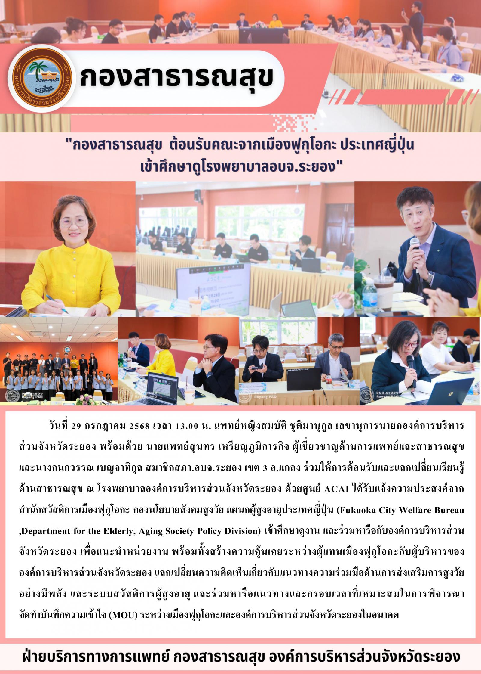 กองสาธารณสุข ต้อนรับคณะจากเมืองฟูกุโอกะ ประเทศญี่ปุ่น เข้าศึกษาดูโรงพยาบาลอบจ.ระยอง