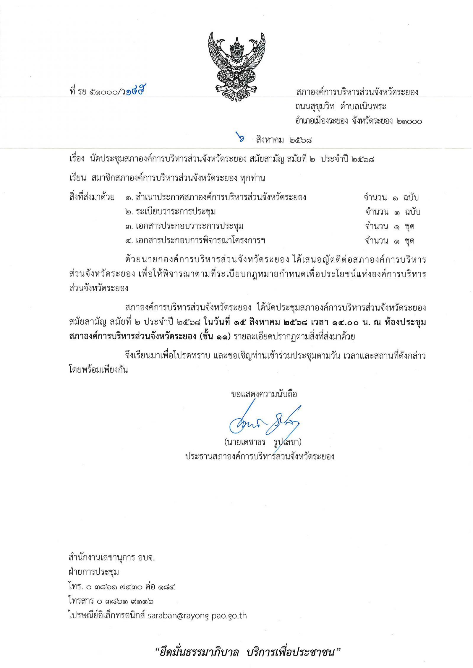 ประชุมสภาองค์การบริหารส่วนจังหวัดระยอง สมัยสามัญ สมัยที่ ๒ ประจำปี ๒๕๖๘