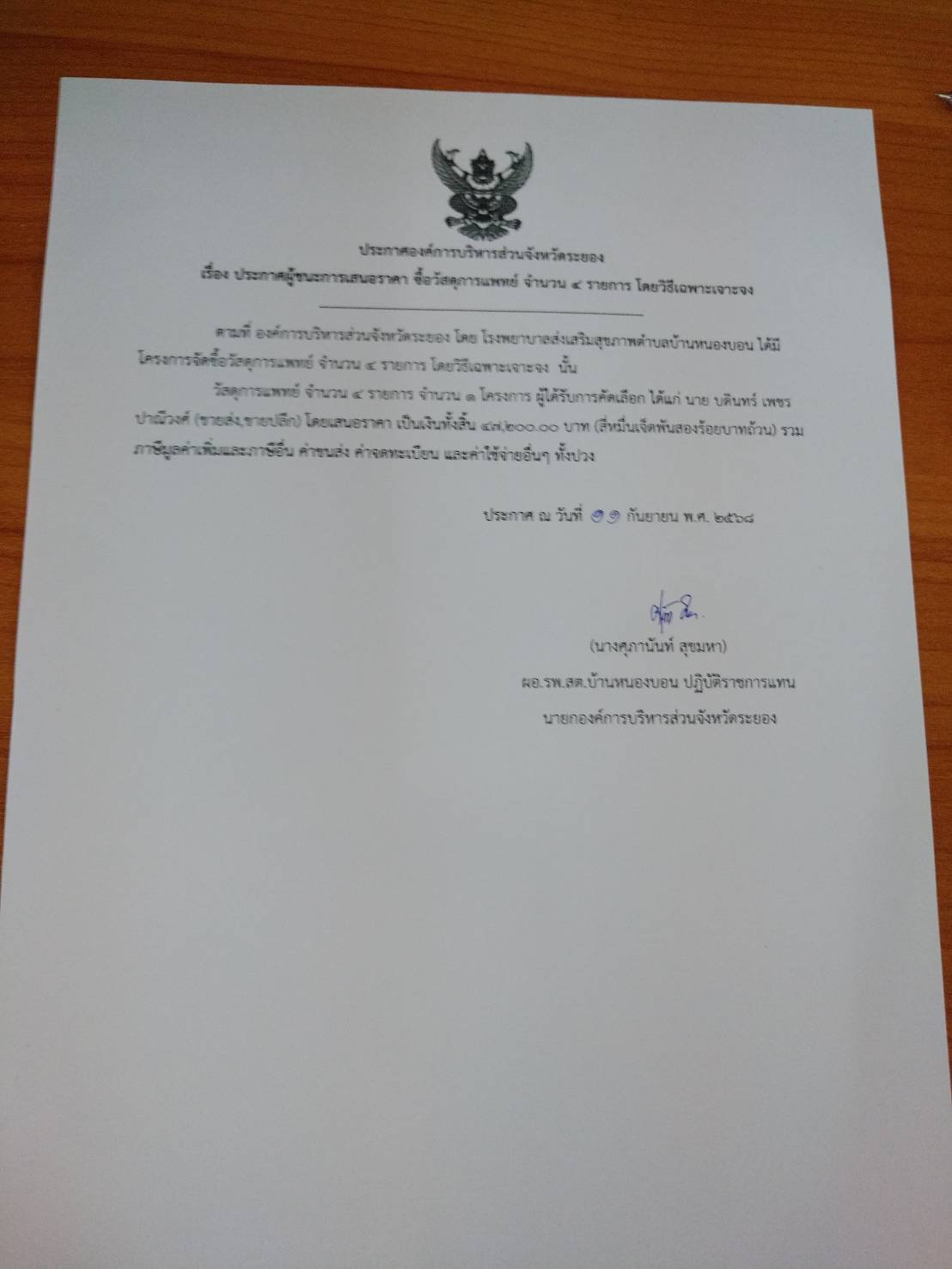 ประกาศผู้ชนะเสนอราคาจัดซื้อจัดจ้าง