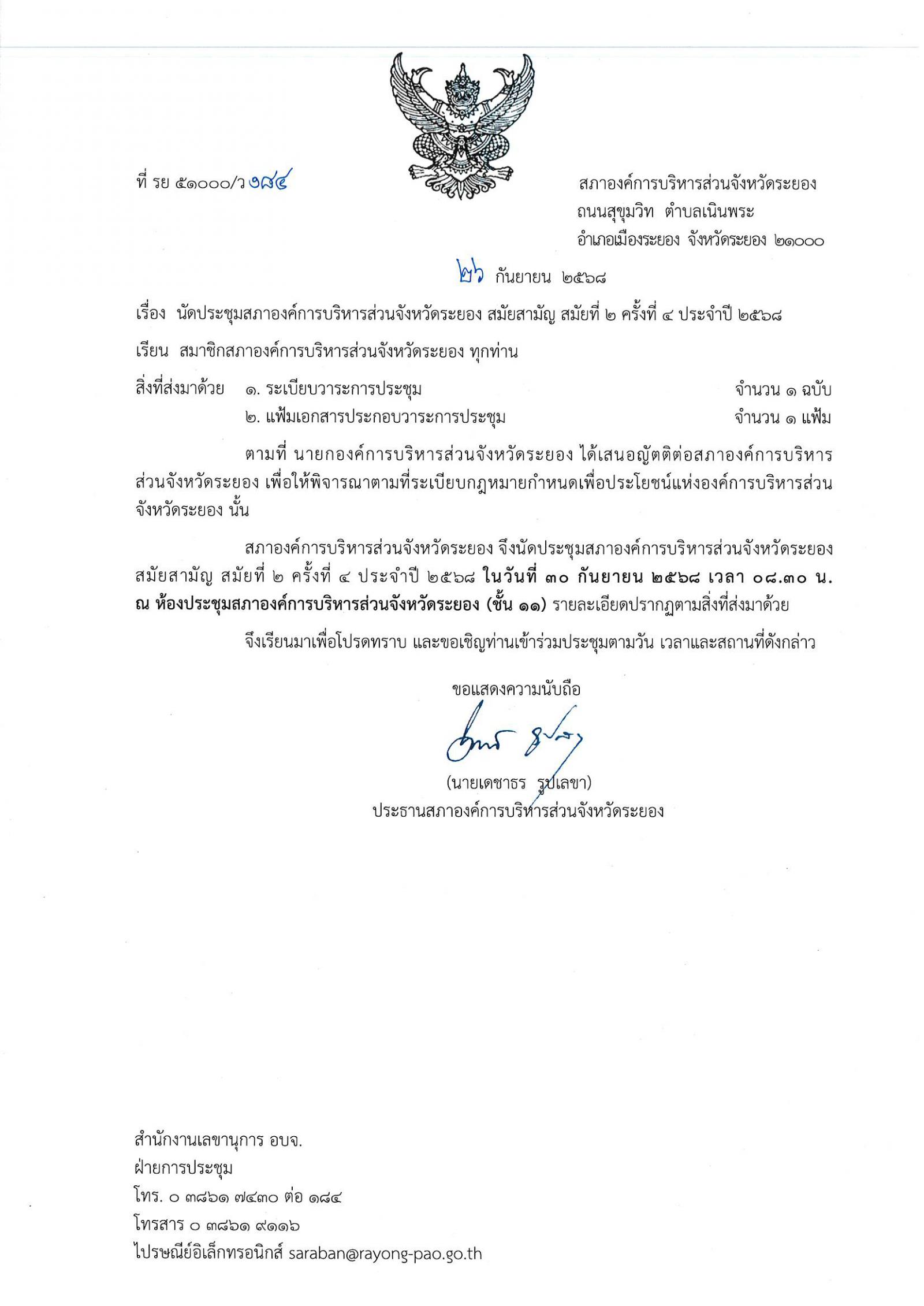 นัดประชุมสภาองค์การบริหารส่วนจังหวัดระยอง สมัยสามัญ สมัยที่ 2 ครั้งที่ 4 ประจำปี 2568.pdf