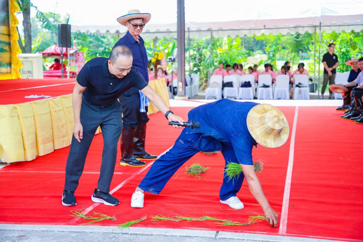 โดยภายในงานได้มีการร่วมยืนไว้อาลัยให้กับ สมเด็จพระพันปีหลวง ก่อนเริ่มกิจกรรมดำนา