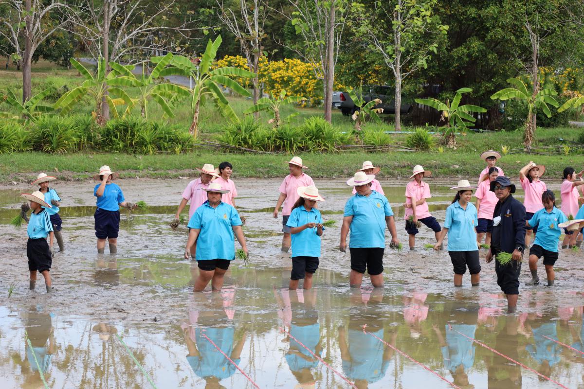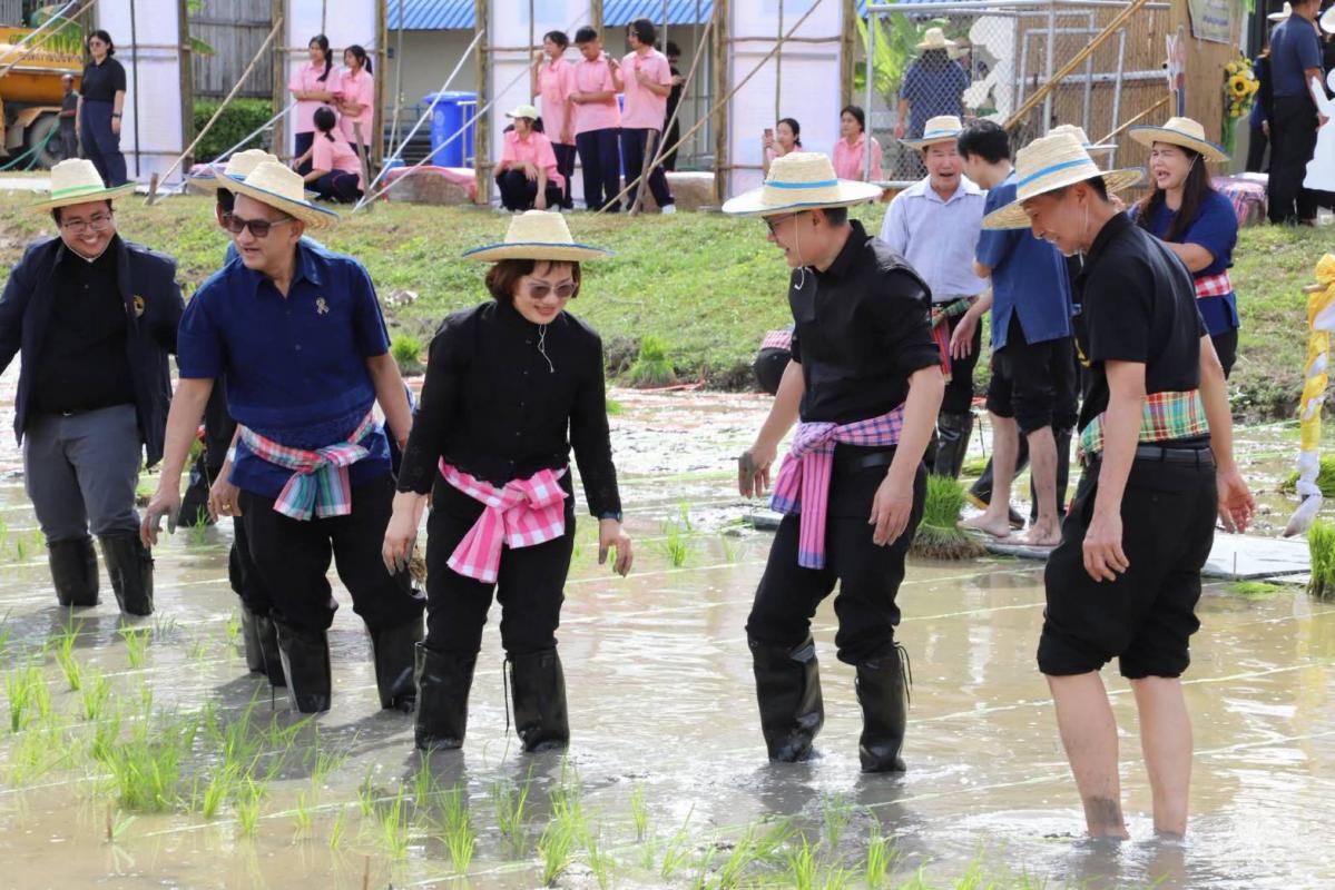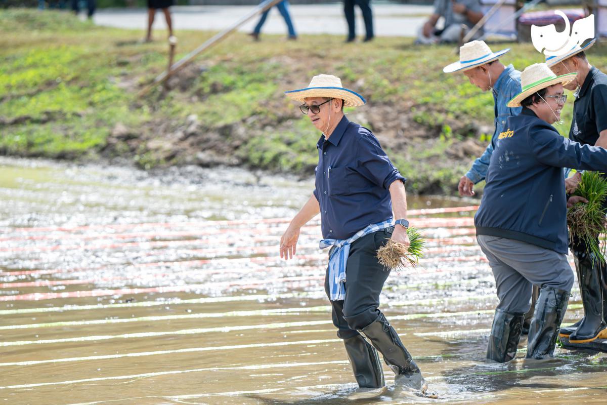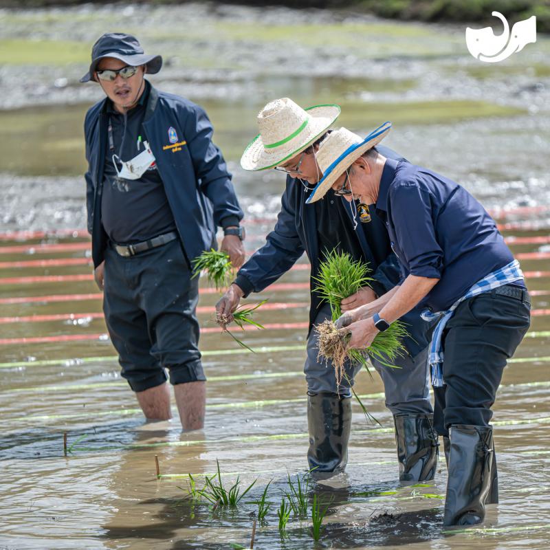 “ดำนาตามรอยพ่อ สานต่อความพอเพียง”บริเวณแปลงนาสาธิต
