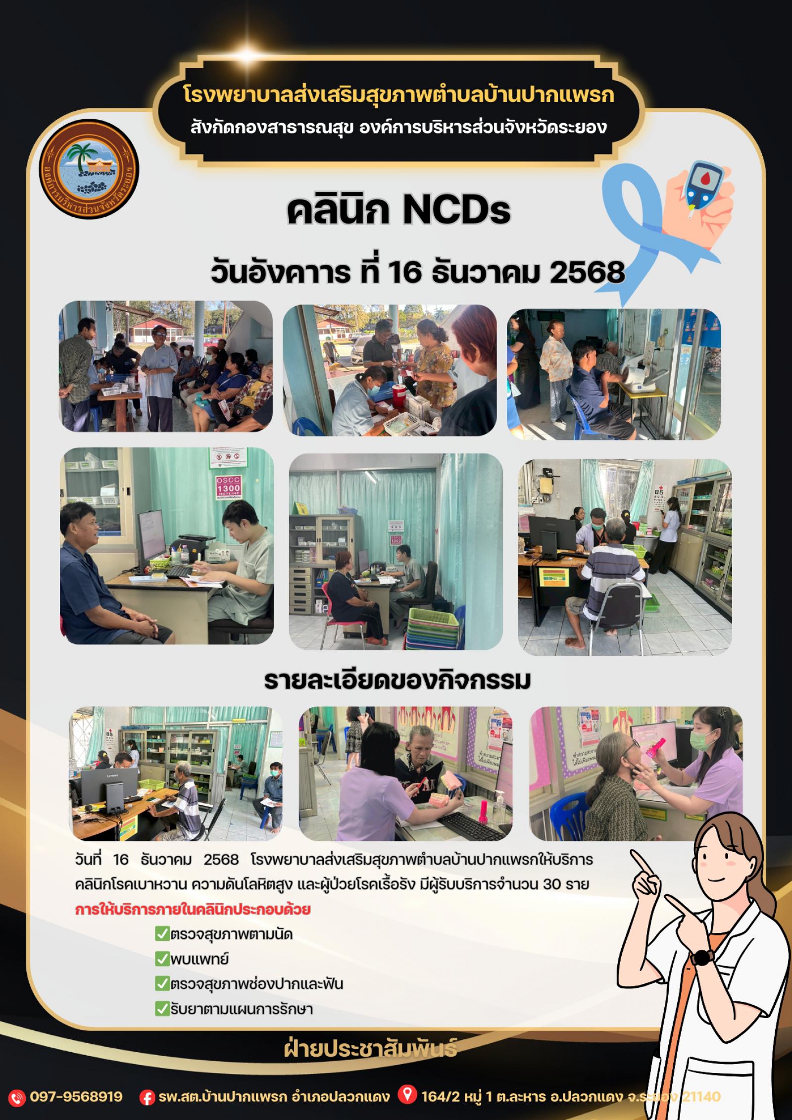 วันที่ 16 ธันวาคม 2568 รพ.สต.บ้านปากแพรก ให้บริการคลินิกโรคเบาหวาน ความดันโลหิตสูง และโรคเรื้อรัง จำนวน 30 ราย