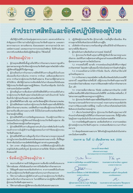 โหลดคำประกาศสิทธิและข้อพึงปฏิบัติผู้ป่วย