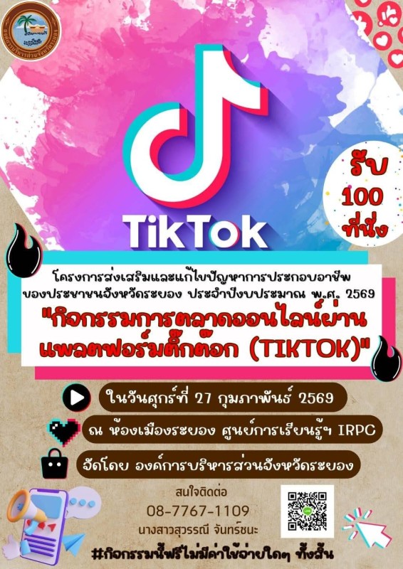 โครงการส่งเสริมและแก้ไขปัญหาการประกอบอาชีพของประชาชนจังหวัดระยอง ประจำปีงบประมาณ 2569