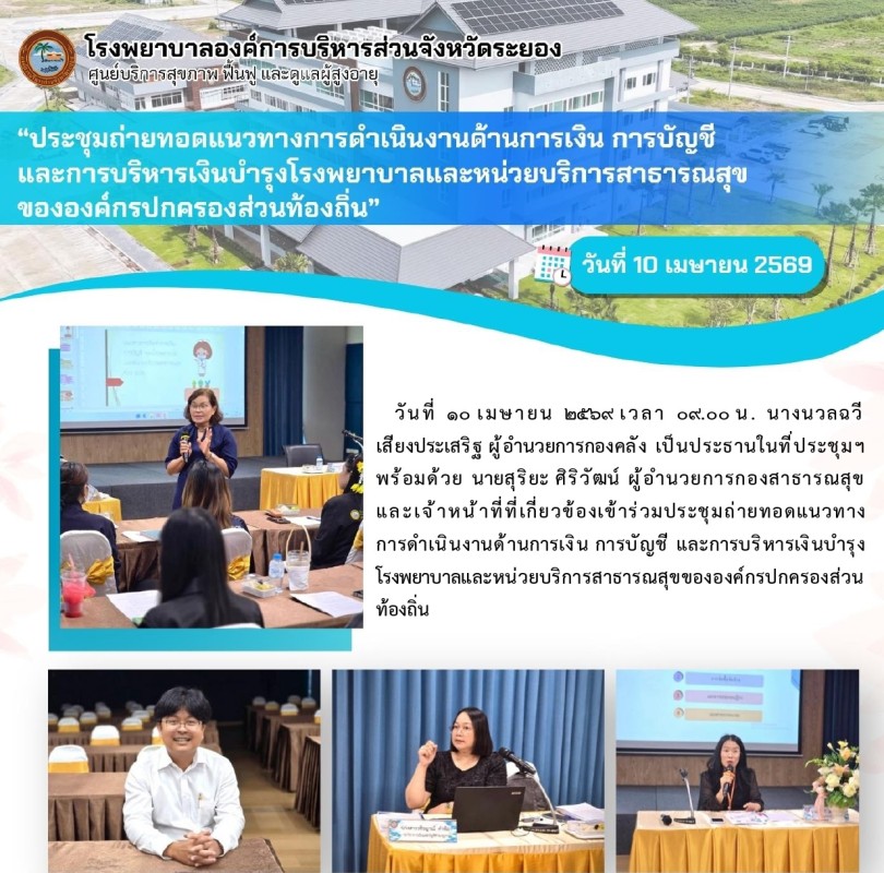 ประชุมถ่ายทอดแนวทางการดำเนินงานด้านการเงิน การบัญชี และการบริหารเงินบำรุงโรงพยาบาลและหน่วยบริการสาธารณสุขขององค์กรปกครอง