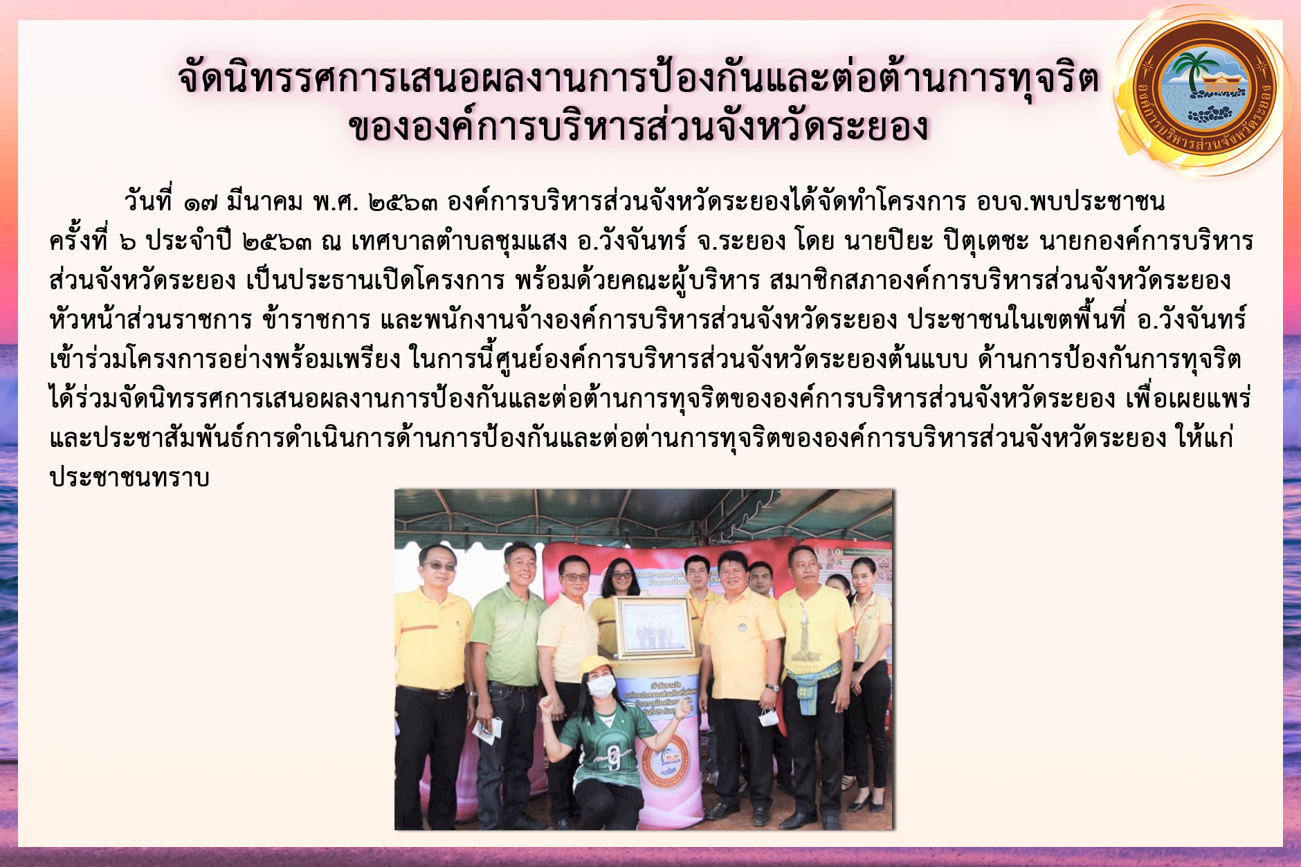 - ศูนย์อบจ.ระยองต้นแบบ ด้านการป้องกันการทุจริต