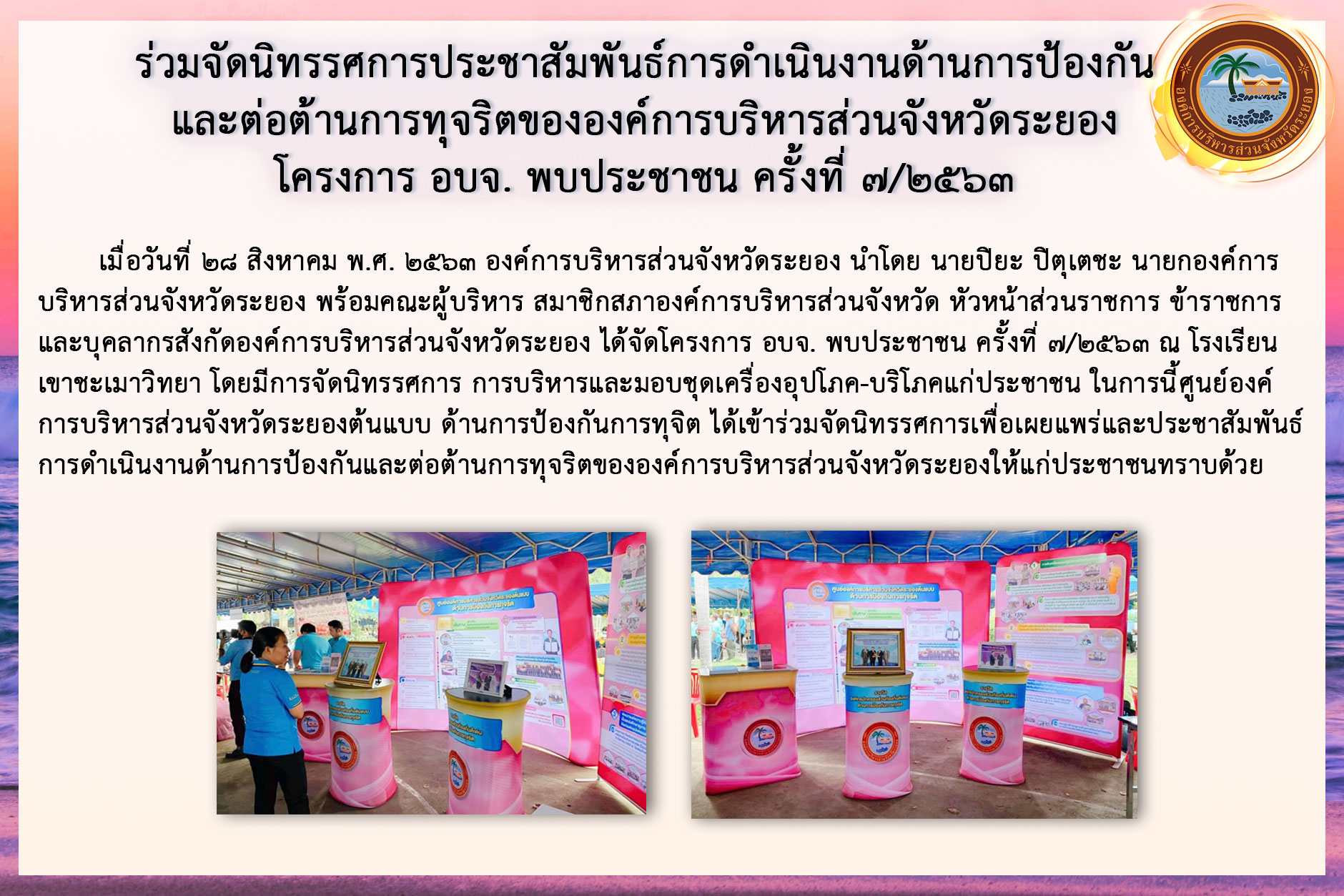 ร่วมจัดนิทรรศการประชาสัมพันธ์การดำเนินงานด้านการป้องกันและต่อต้านการทุจริต ของ อบจ.ระยอง โครงการ อบจ.พบประชาชน ครั้งที่ 7/2563