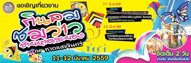 ในงานพบกับนิทรรศการว่าวไทยโบราณ และชมการสาธิตการชนว่าว รวมทั้งการแสดงของนักเรียนมัธยมตากสินระยอง ซึ่งงาน “กินลม ชมว่าว ชายหาดระยอง” จัดขึ้นระหว่างวันที่ 11-12 มีนาคม 2559