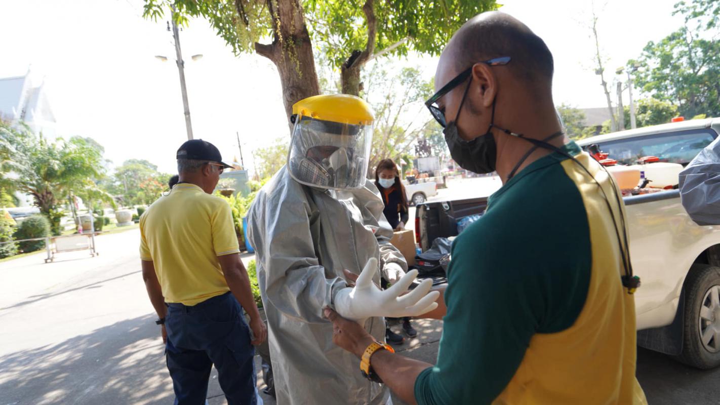 วันที่ 18 มกราคม 2564 องค์การบริหารส่วนจังหวัดระยอง โดยฝ่ายป้องกันและบรรเทาสาธารณภัย กองทรัพยากรธรรมชาติและสิ่งแวดล้อม จัดเจ้าหน้าที่เข้าทำการฉีดพ่นน้ำยาฆ่าเชื้อไวรัส Covid-19 เพื่อป้องกันการแพร่ระบาดของเชื้อไวรัส covid-19 และ เพื่อสร้างความมั่นใจให้กับประชาชน โดยสถานที่ดำเนินการฉีดพ่นในวันนี้ ประกอบไปด้วย 1. วัดพลงไสว ต.ชากพง อ.แกลง 2.หมู่บ้านในชากหมู่ 2 ต.ชากพง อ.แกลง 3.วัดคลองทุเรียน ต.ชากพง อ.แกลง