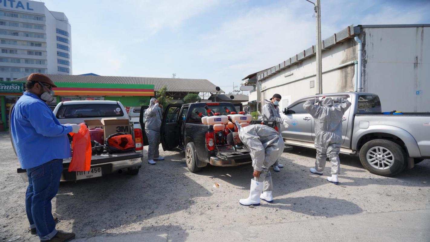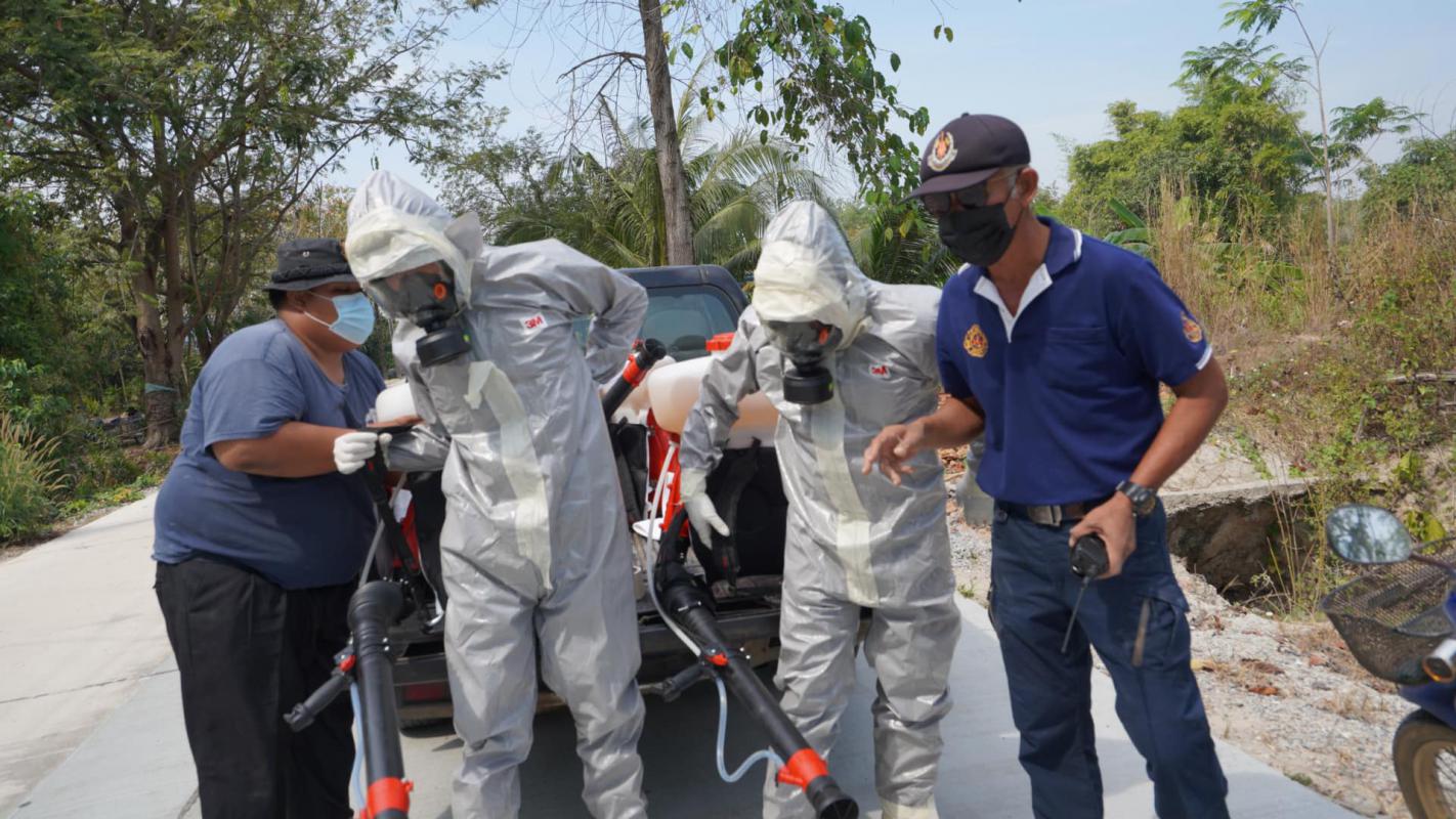 วันที่ 15 มกราคม 2564 องค์การบริหารส่วนจังหวัดระยอง โดยฝ่ายป้องกันและบรรเทาสาธารณภัย กองทรัพยากรธรรมชาติและสิ่งแวดล้อม จัดเจ้าหน้าที่เข้าทำการฉีดพ่นน้ำยาฆ่าเชื้อไวรัส Covid-19 ณ บริเวณ บ้านผู้ติดเชื้อและผู้ที่รอผลการตรวจ พร้อมกับบริเวณโดยรอบ เพื่อป้องกันการแพร่ระบาดของเชื้อไวรัส covid-19 และเพื่อสร้างความมั่นใจให้กับประชาชน โดยสถานที่ดำเนินการฉีดพ่นในวันนี้ ประกอบไปด้วย