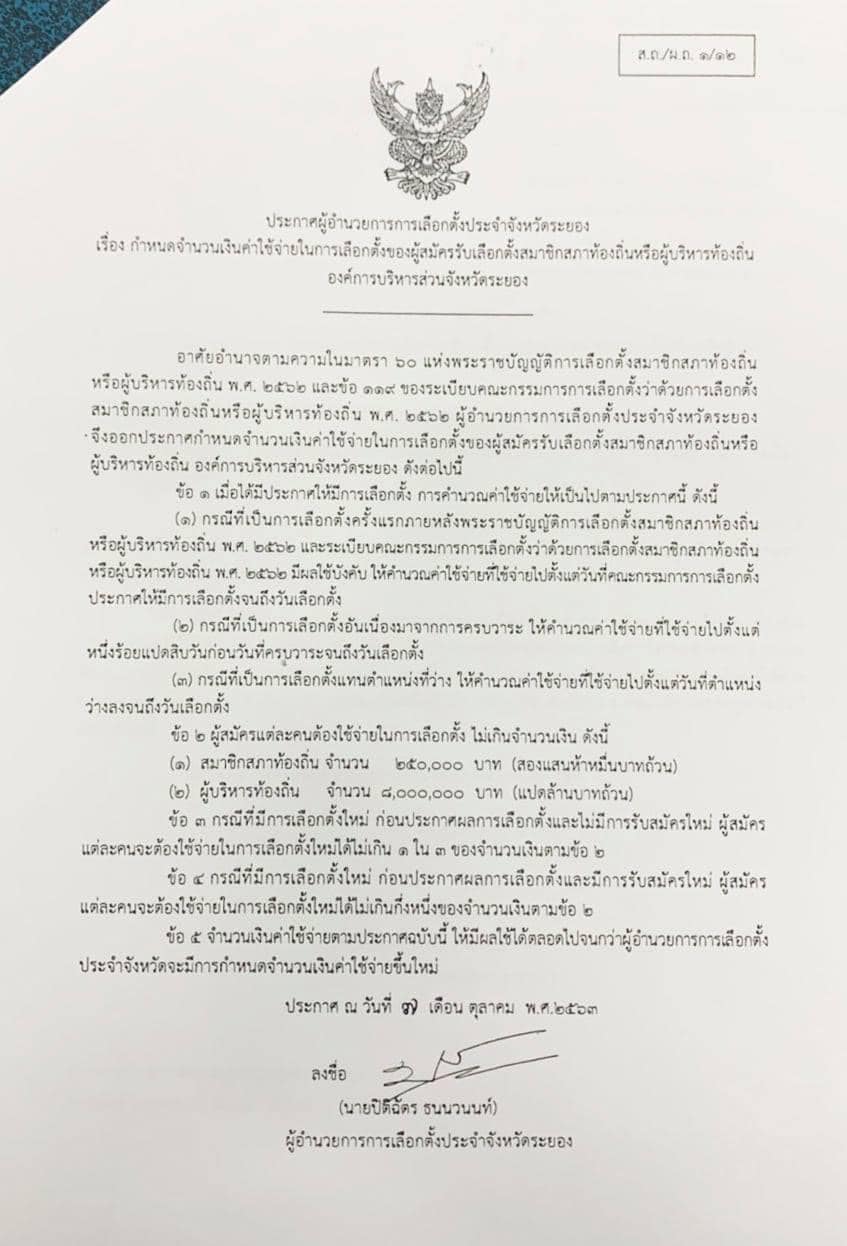 ในการหาเสียงต้องไม่เกิน ๑.สมาชิกสภาองค์การบริหารส่วนจังหวัดระยอง