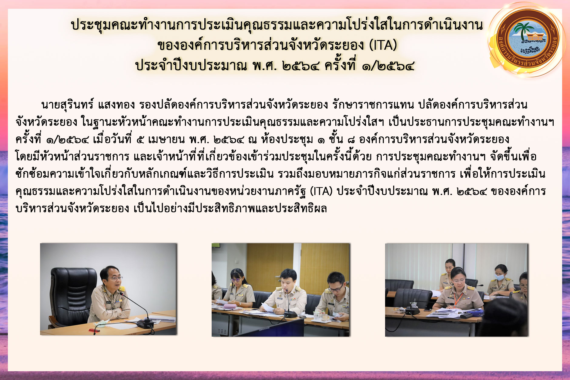 ประชุมคณะทำงานการประเมินคุณธรรมและความโปร่งใสในการดำเนินงานขององค์การบริหารส่วนจังหวัดระยอง (ITA) ประจำปีงบประมาณ พ.ศ. 2564 ครั้งที่ 1/2564