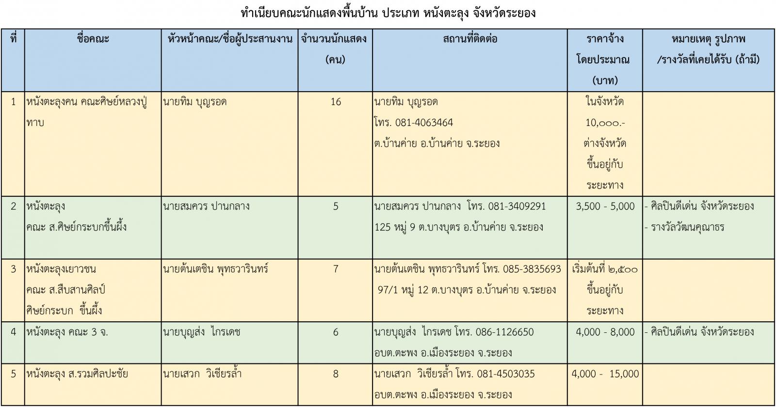 ทำเนีบยคณะนักแสดงพื้นบ้าน ประเภทหนังตะลุง จังหวัดระยอง