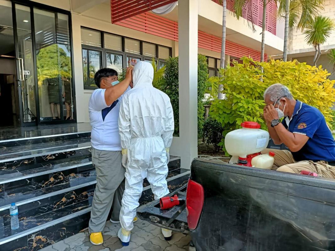 ฉีดพ่นน้ำยาฆ่าเชื้อโดยฝ่ายป้องกันและบรรเทาสารณภัย สำนักปลัดองค์การบริหารส่วนจังหวัด