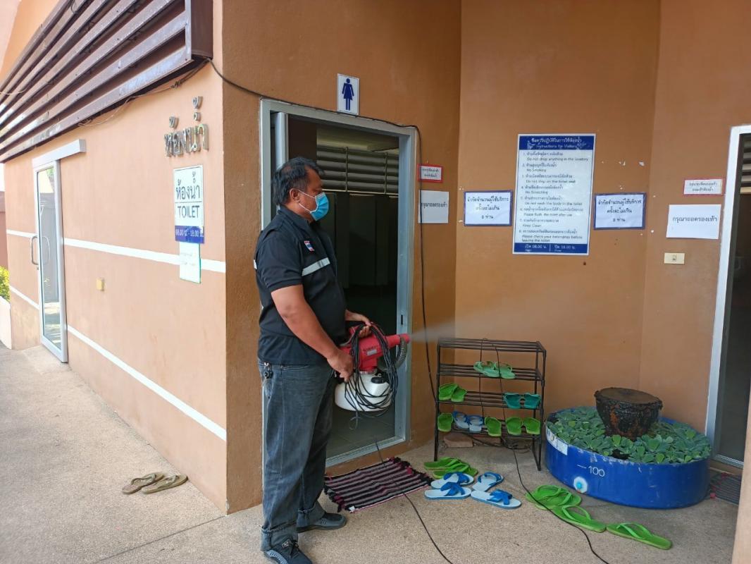 ฝ่ายป้องกันและบรรเทาสาธารณภัย อบจ.ระยอง ได้ออกทำการฉีดพ่นน้ำยาฆ่าเชื้อ
