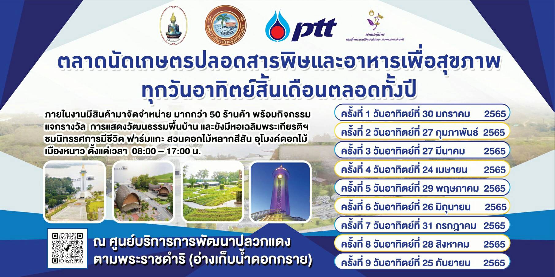 ประชาสัมพันธ์มหกรรมตลาดสินค้าเกษตรปลอดสารพิษและอาหารเพื่อสุขภาพ ณ ศูนย์บริการการพัฒนาปลวกแดงตามพระราชดำริ จังหวัดระยอง