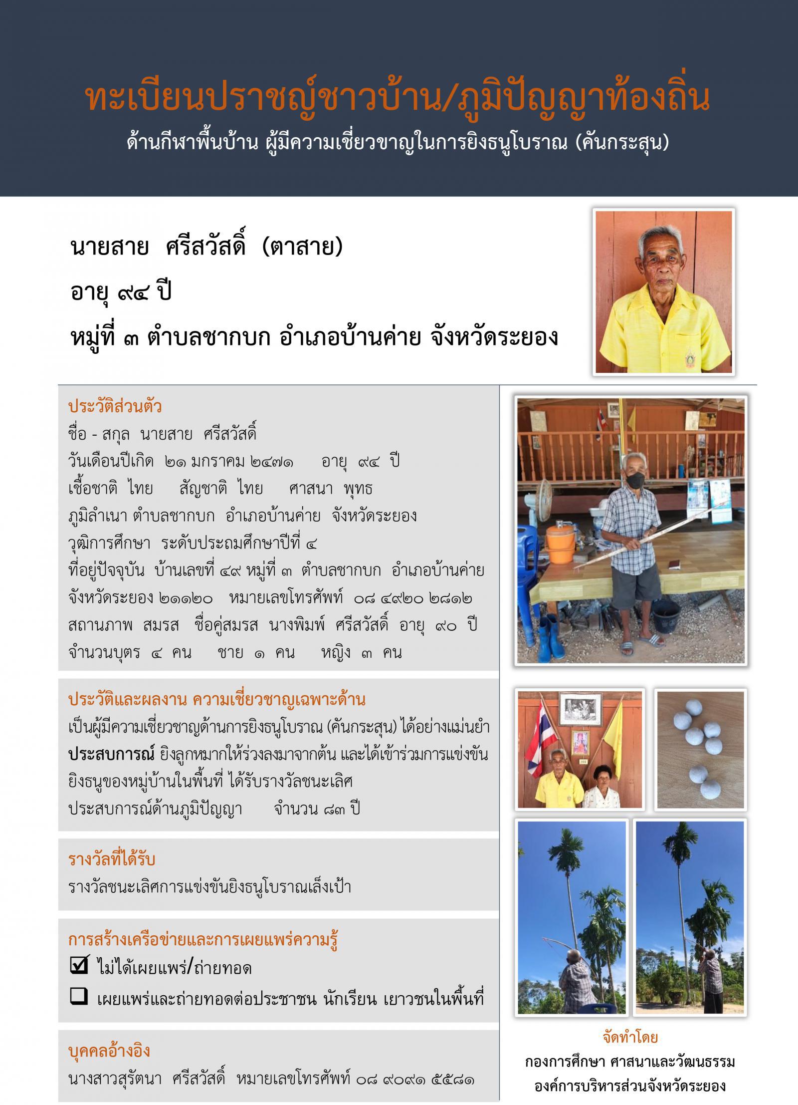 ทะเบียนปราชญ์ชาวบ้าน/ภูมิปัญญาท้องถิ่น ประจำปี 2568