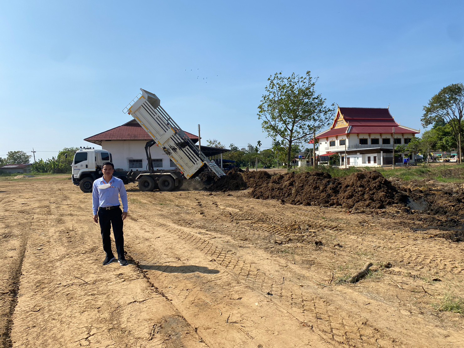 ทัศนียภาพในการเตรียมความพร้อมด้านสถานที่เพื่อจัดโครงการสืบสานประเพณีวัฒนธรรม