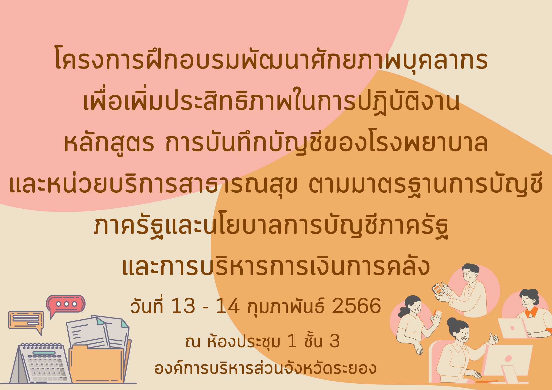 โครงการฝึกอบรมพัฒนาศักยภาพบุคลากร เพื่อเพิ่มประสิทธิภาพในการปฏิบัติงาน หลักสูตร การบันทึกบัญชีของโรงพยาบาล และหน่วยบริการสาธารณสุข ตามมาตรฐานการบัญชีภาครัฐและนโยบาลการบัญชีภาครัฐ และการบริหารการเงินการคลัง