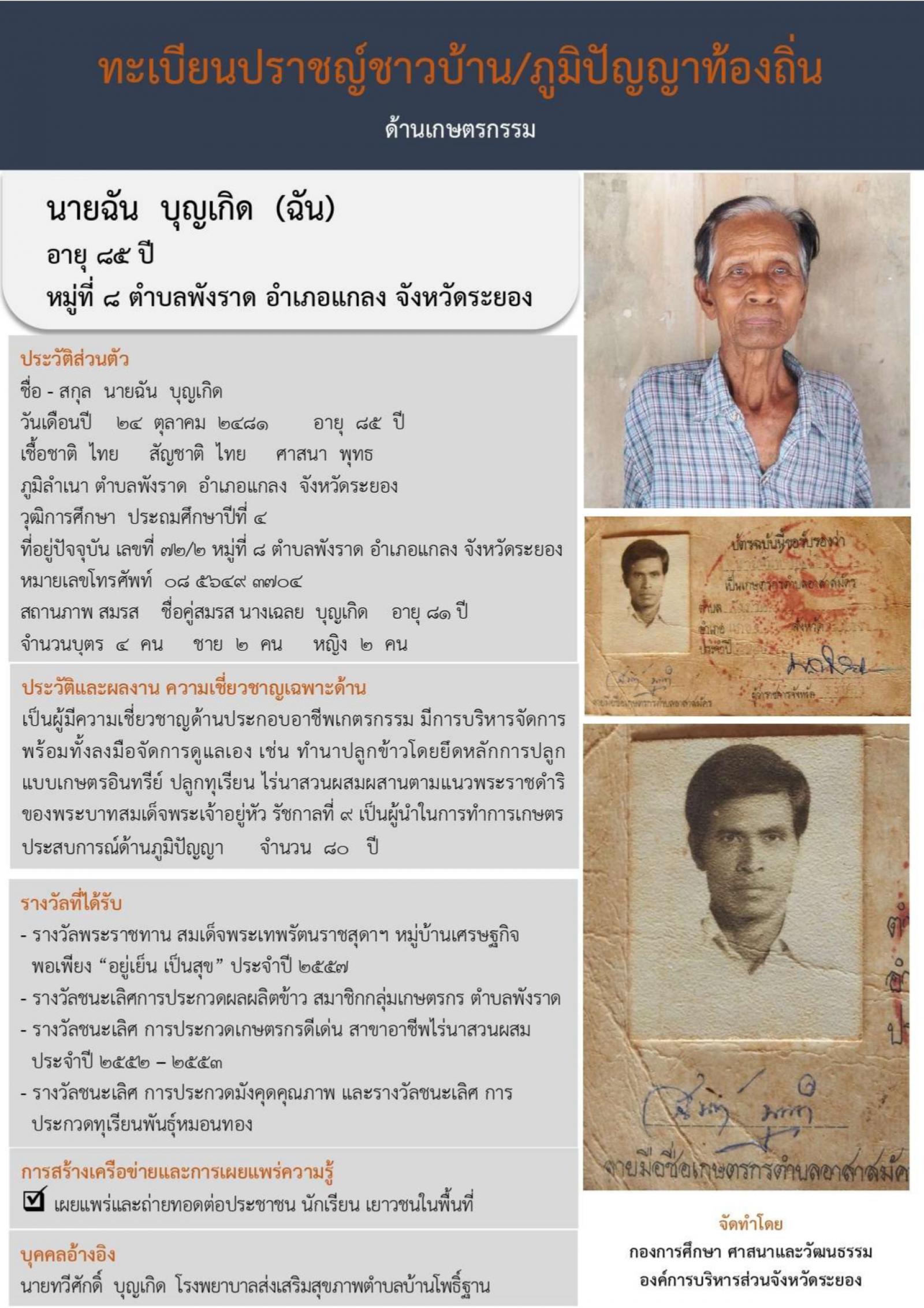 - ทะเบียนปราชญ์ชาวบ้าน/ภูมิปัญญาท้องถิ่น