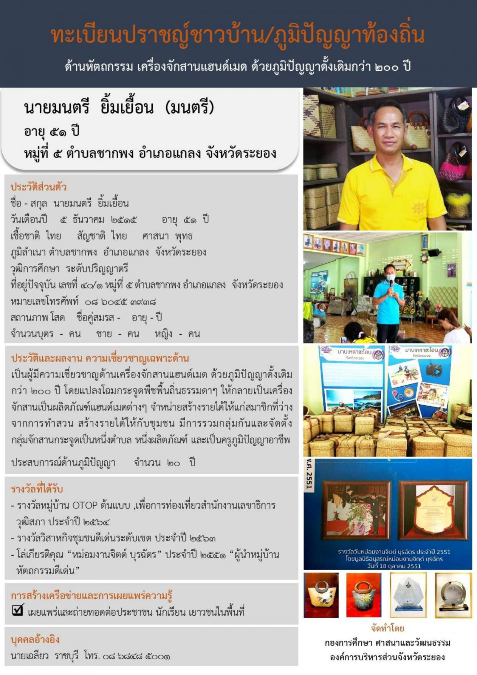 ทะเบียนปราชญ์ชาวบ้าน/ภูมิปัญญาท้องถิ่น ประจำปี 2568