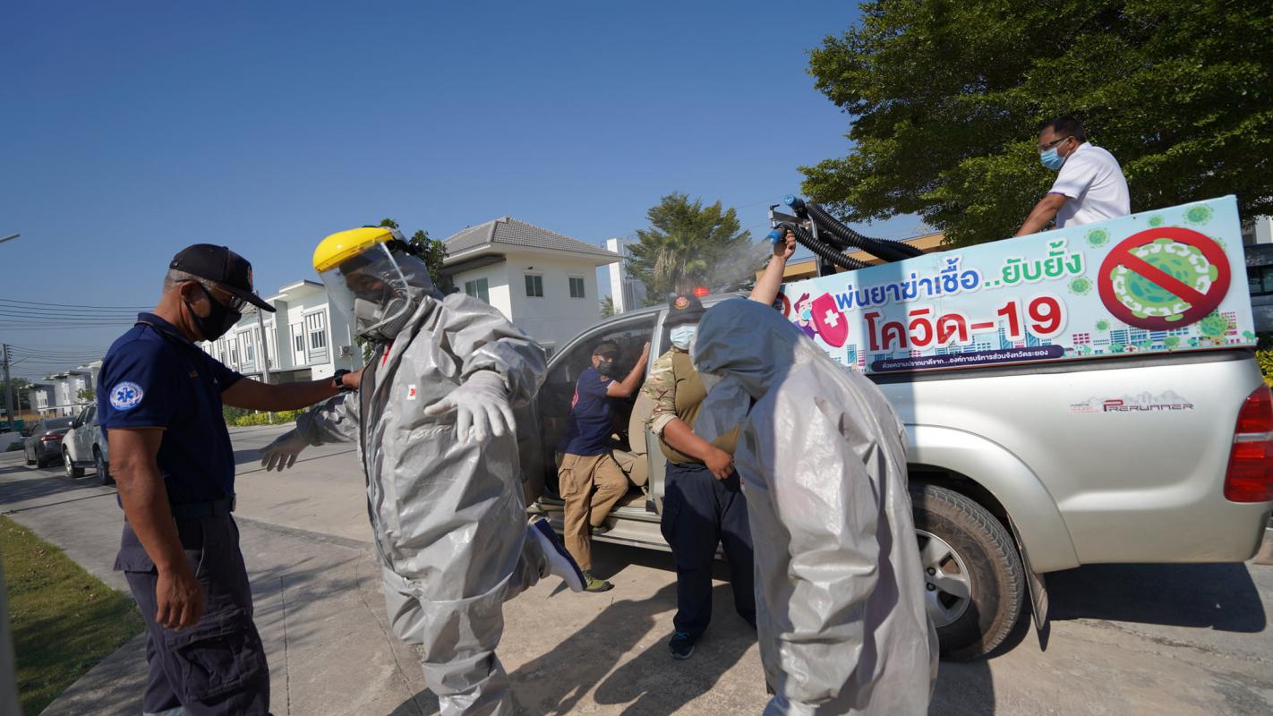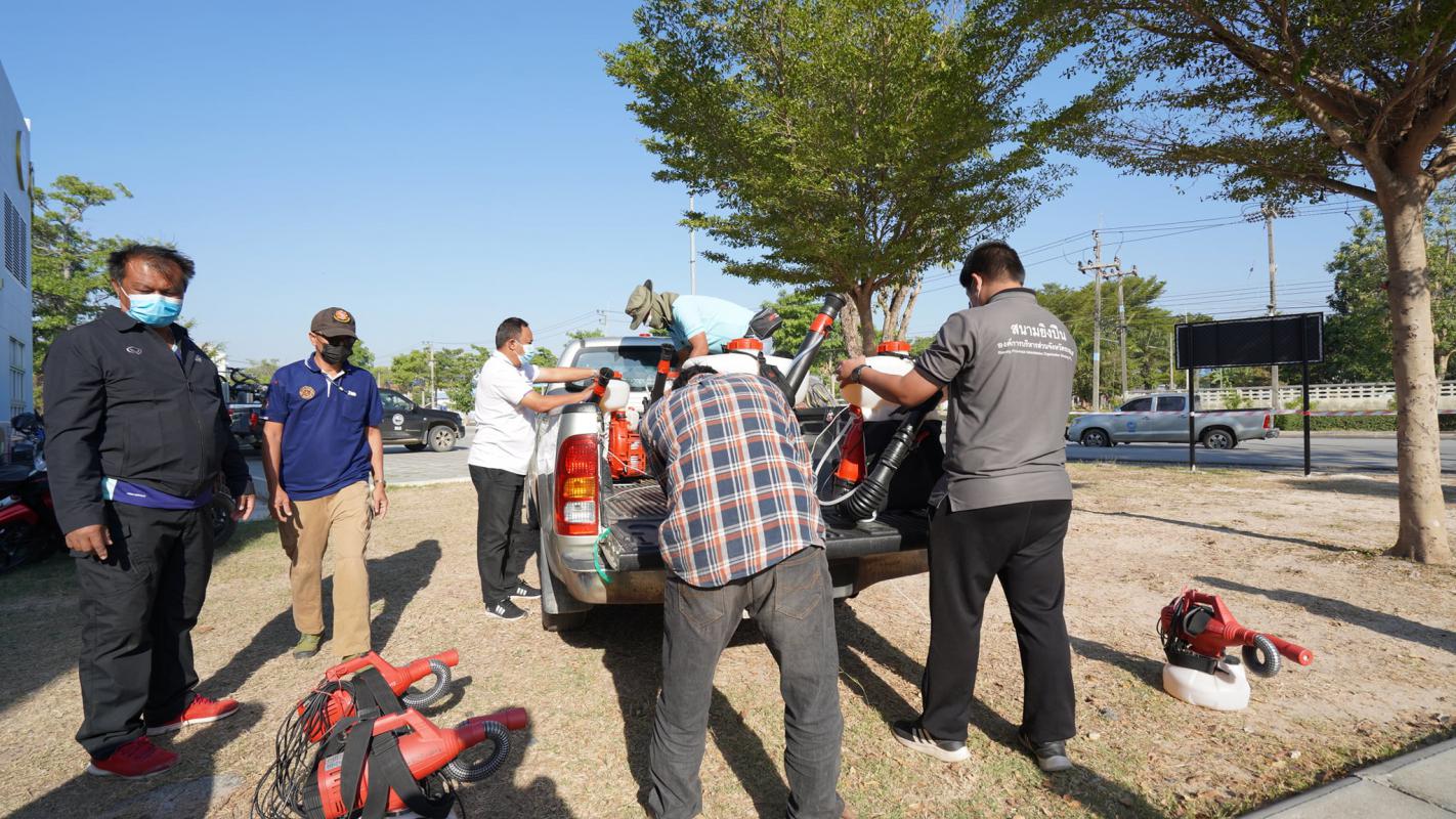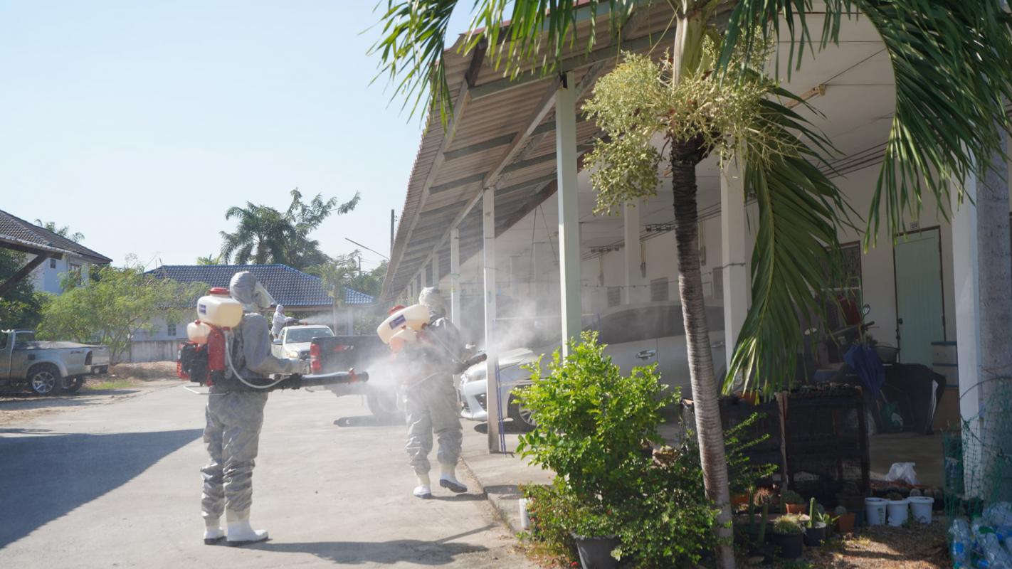 องค์การบริหารส่วนจังหวัดระยองจัดเจ้าหน้าที่เข้าทำการฉีดพ่นน้ำยาฆ่าเชื้อไวรัส Covid-19