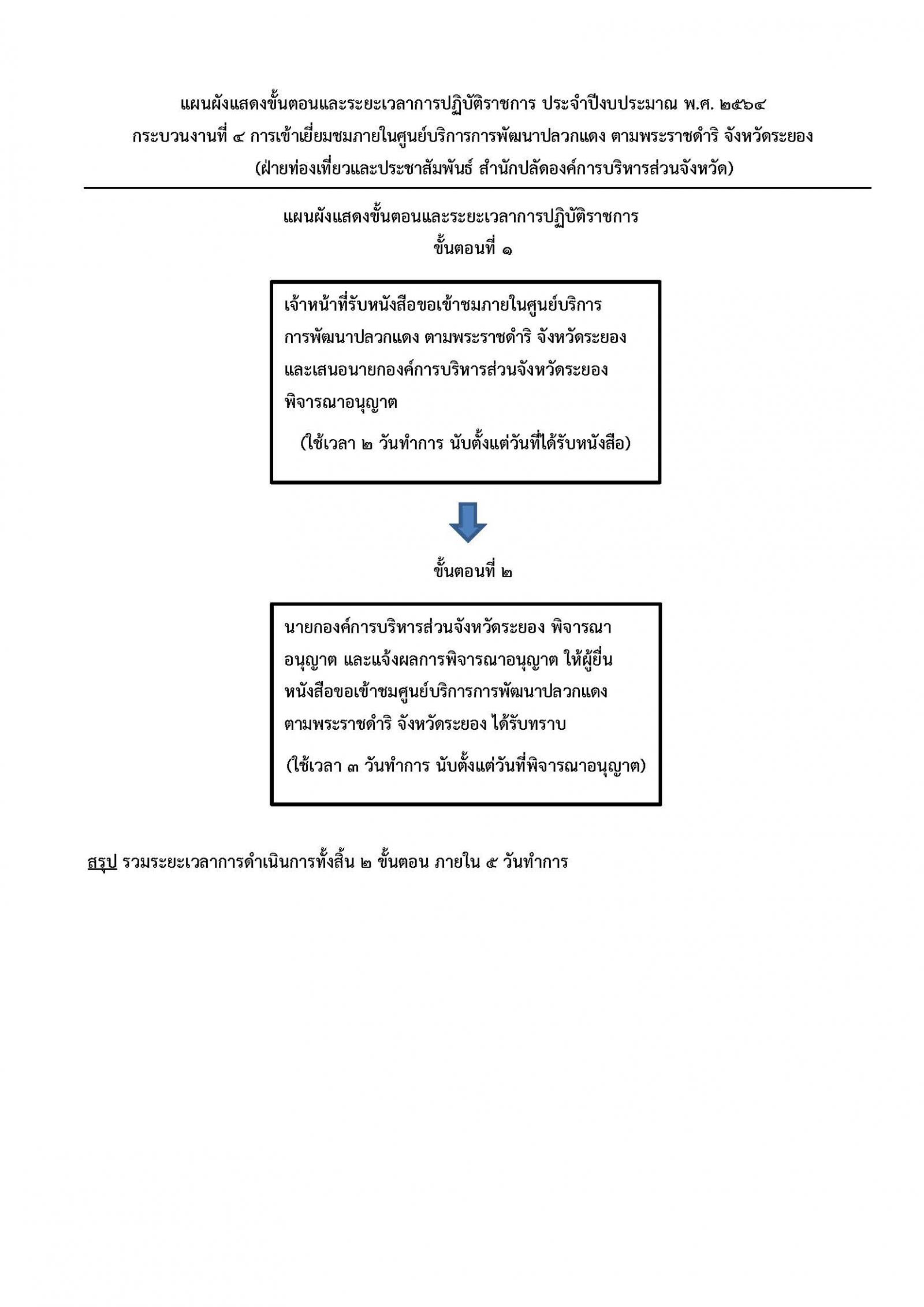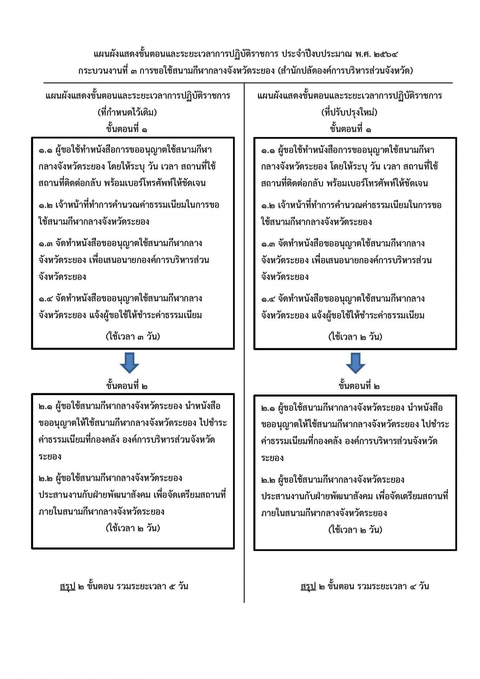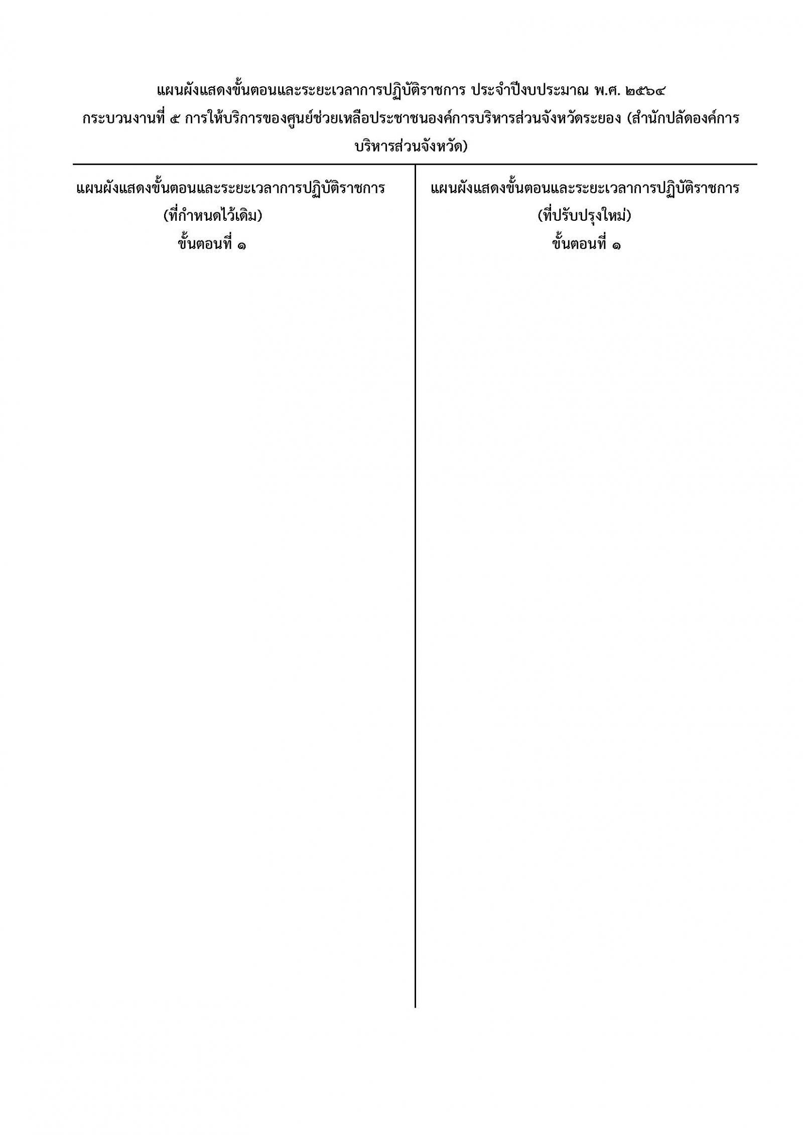 ด้วยองค์การบริหารส่วนจังหวัดระยอง ได้จัดทำประกาศ เรื่อง การกำหนดระยะเวลาแล้วเสร็จของงาน ประจำปีงบประมาณ พ.ศ. 2564 ได้พิจารณากิจกรรม/หรือกระบวนงาน เพื่อลดขั้นตอนตาม พระราชกฤษฎีกาว่าด้วยหลักเกณฑ์และวิธีการบริหารกิจการบ้านเมืองที่ดี พ.ศ. 2546 และฉบับที่ 2 พ.ศ. 2562 หมวดที่ 5 การลดขั้นตอนการปฏิบัติงาน เมื่อวันที่ 2 ธันวาคม 2563 มีทั้งหมดจำนวน 5 กระบวนงาน ดังนี้![]()