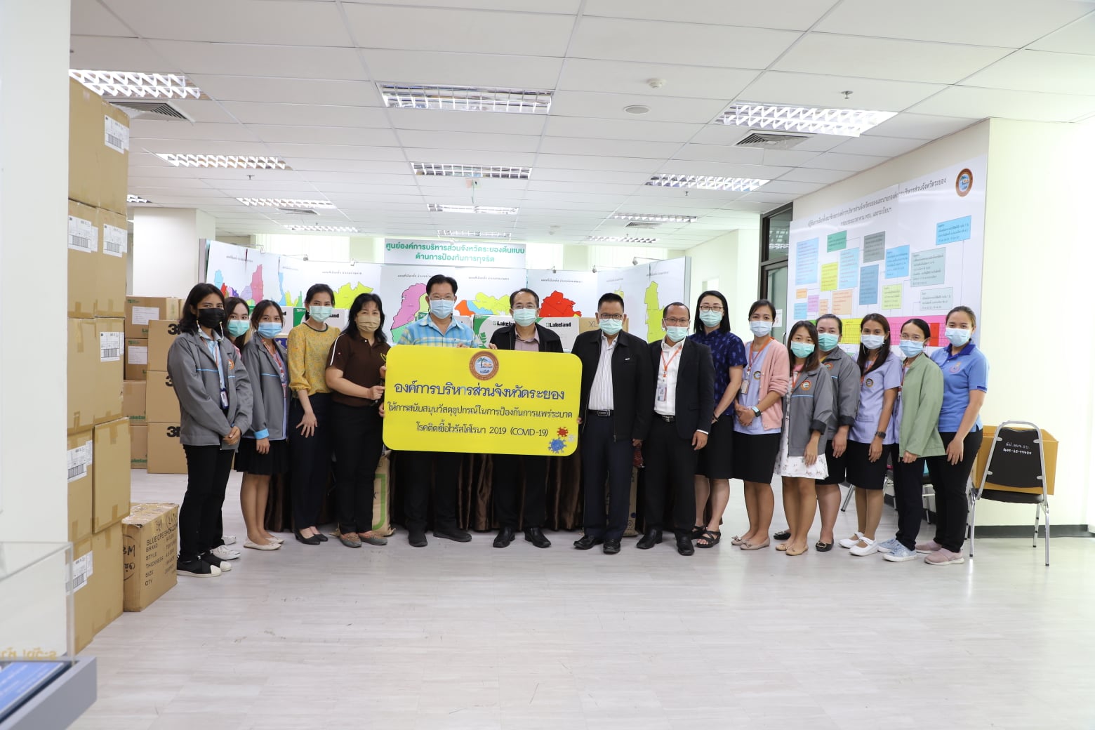 องค์การบริหารส่วนจังหวัดระยองมอบวัสดุอุปกรณ์ในการป้องกันการแพร่ระบาดโรคติดเชื้อไวรัสโคโรนา 2019 (COVID-19) ให้กับสำนักงานสาธารณสุขจังหวัดระยอง