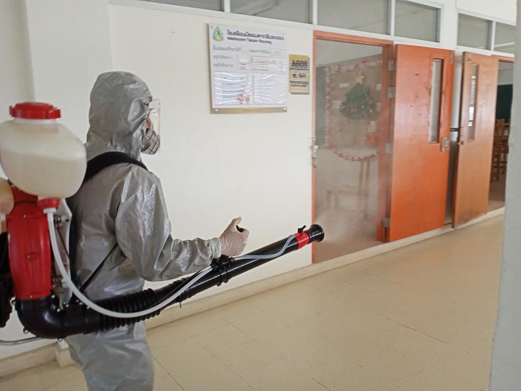 วันที่ 29 มกราคม 2564 องค์การบริหารส่วนจังหวัดระยอง โดยฝ่ายป้องกันและบรรเทาสาธารณภัย กองทรัพยากรธรรมชาติและสิ่งแวดล้อม จัดเจ้าหน้าที่เข้าทำการฉีดพ่นน้ำยาฆ่าเชื้อไวรัส Covid-19 เพื่อป้องกันการแพร่ระบาดของเชื้อไวรัส covid-19 และ เพื่อสร้างความมั่นใจให้กับประชาชน โดยสถานที่ดำเนินการฉีดพ่นในวันนี้ ประกอบไปด้วย 1. โรงเรียนมัธยมตากสินระยอง 2.โรงเรียนอนุบาลนานาชาติตากสินบ้านค่าย (วัดหวายกรอง) 3. โรงเรียนอนุบาลนานาชาติตากสินระยอง 4. โรงเรียนนานาชาติตากสินแกลง 5. สวนสาธารณะเฉลิมพระเกียรติฯ อำเภอบ้านค่าย