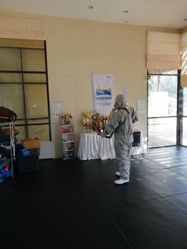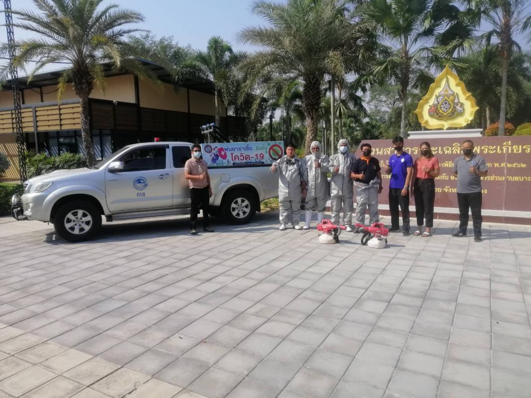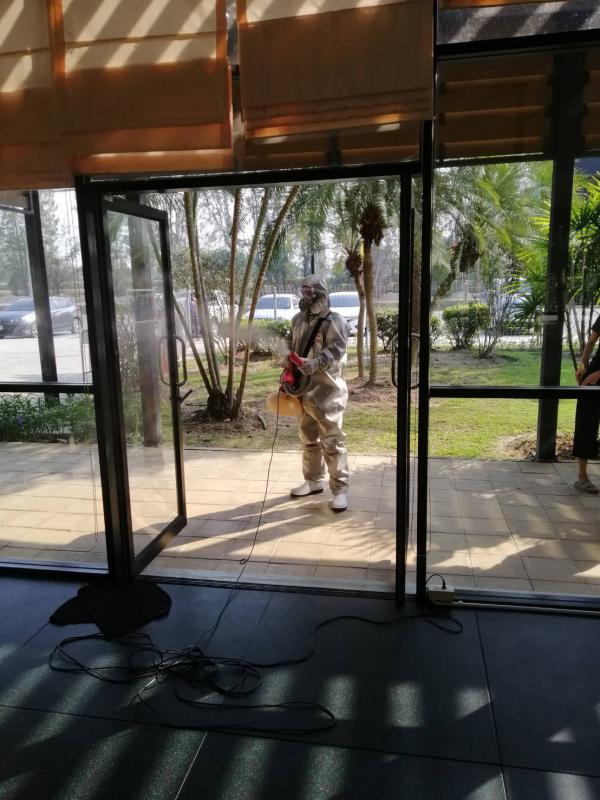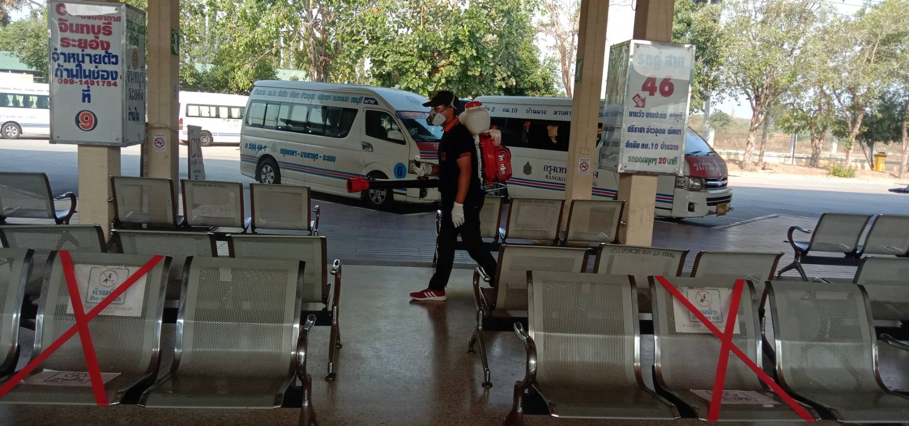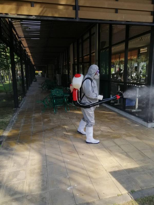 ฉีดพ่นน้ำยาฆ่าเชื้อไวรัส Covid-19 เพื่อป้องกันการแพร่ระบาดของเชื้อไวรัส