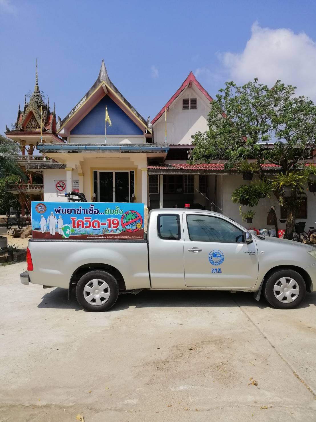 องค์การบริหารส่วนจังหวัดระยองทำการฉีดพ่นน้ำยาฆ่าเชื้อไวรัส Covid-19