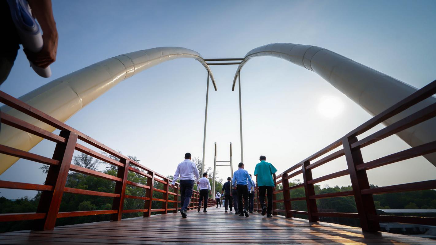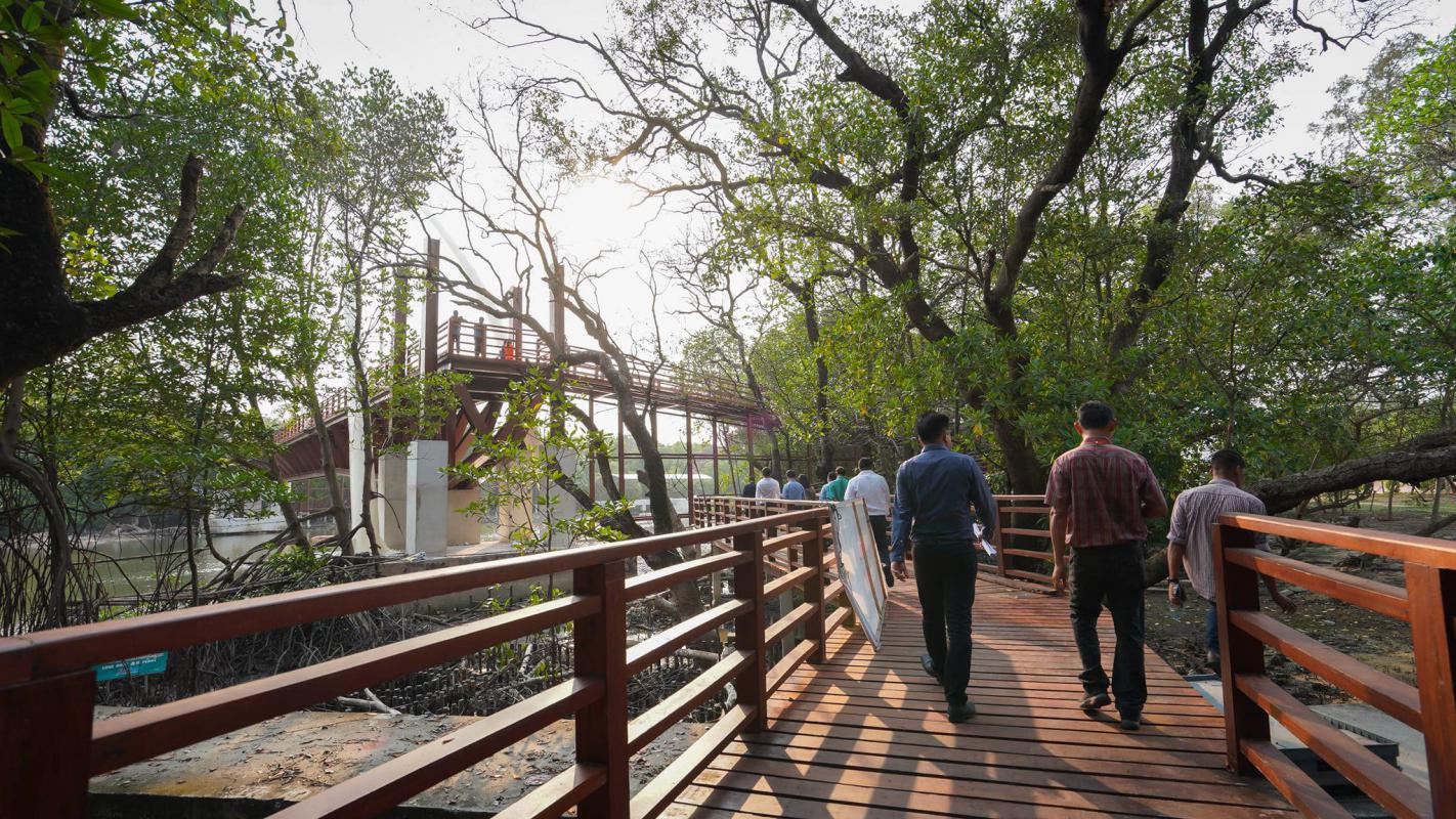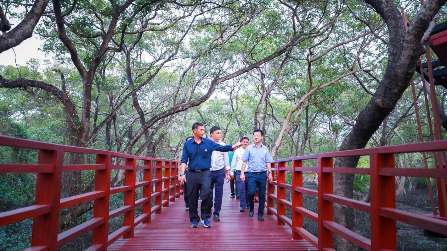 วันที่ 17 มีนาคม 2564 นายปิยะ ปิตุเตชะ นายกองค์การบริหารส่วนจังหวัดระยอง พร้อมด้วย นายกิตติ เกียรติ์มนตรี รองนายกองค์การบริหารส่วนจังหวัดระยอง (1) นายฉัตรชัย ปิตุเตชะ เลขานุการนายกองค์การบริหารส่วนจังหวัดระยอง นายสุวรรณ เวชสัมฤทธิ์ สมาชิกสภาองค์การบริหารส่วนจังหวัดระยอง เขต 1 อำเภอเมือง นายสมบัติ มุมทอง หัวหน้าสำนักปลัด อบจ. นางขนิษฐา สัสดีพันธ์ ผู้อำนวยการกองช่าง เข้าติดตามความคืบหน้าโครงการป่าชายเลนพระเจดีย์กลางน้ำ อัญมณีหนึ่งเดียวในระยอง โดยอบจ.ระยองร่วมมือกับหน่วยงานที่เกี่ยวข้องฯ ในการทำโครงการนี้เพื่ออนุรักษ์ป่าชายเลนพระเจดีย์กลางน้ำซึ่งเป็นป่าเก่าแก่คู่บ้านคู่เมืองระยอง โดยมีเนื้อที่ประมาณ 500 ไร่เพื่อไว้เป็นปอดของคนเมืองระยอง ให้เป็นสถานที่ออกกำลังกาย และ สถานที่ท่องเที่ยวให้กับคนระยอง ซึ่งขณะนี้ได้ดำเนินการก่อสร้างไป ระยะ ที่ 1 -2 เสร็จสมบูรณ์ สามารถเดินชมทัศนียภาพป่าโกงกางที่สมบูรณ์ใจกลางเมืองระยองอย่างได้เพลิดเพลิน โดยในขณะนี้อยู่ระหว่างการดำเนินงาน ระยะที่ 3 และ 4 ต่อไป ซึ่งคาดว่าถ้าเสร็จสมบูรณ์ จะมีระยะทางในการเดินรอบโครงการประมาณ 4 กิโลเมตร ส่วนท่านใดที่จะเข้ามาเยี่ยมชมทัศนียภาพป่าชายเลน สามารถเข้าได้ตั้งแต่เวลา 07.00 – 19.00 น. ทุกวัน