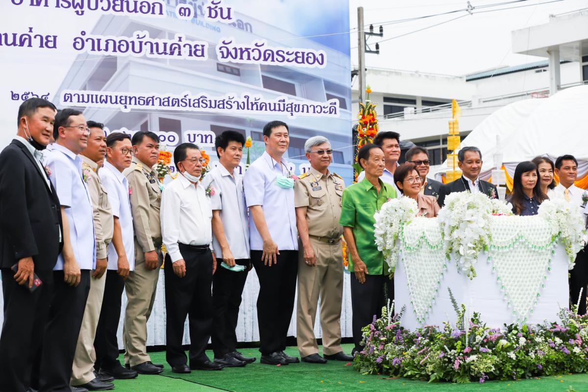 วันที่ 22 มีนาคม 2564 เวลา 08.39 น. ณ โรงพยาบาลบ้านค่าย จังหวัดระยอง นายปิยะ ปิตุเตชะ นายกองค์การบริหารส่วนจังหวัดระยอง พร้อมด้วย คณะผู้บริหาร และ สมาชิกสภาองค์การบริหารส่วนจังหวัดระยอง เข้าร่วมพิธีวางศิลาฤกษ์อาคารผู้ป่วยนอก 3 ชั้น โรงพยาบาลบ้านค่าย โดยมีดร.สาธิต ปิตุเตชะ รัฐมนตรีช่วยว่าการกระทรวงสาธารณสุข เป็นประธานพิธีวางศิลาฤกษ์อาคารผู้ป่วยนอก 3 ชั้น และให้สัมภาษณ์ว่า โรงพยาบาลบ้านค่าย เป็นโรงพยาบาลประจำอำเภอ ขนาดเล็ก ขนาด 3๐ เตียง มีอาคารผู้ป่วยนอก 2 ชั้น จำนวน 1 หลัง ต้องรับผิดชอบดูแลผู้สูงอายุในพื้นที่อำเภอบ้านค่าย จำนวน 14,050 ราย คิดเป็น 1 ใน 5 ของประชากรทั้งหมด ส่วนใหญ่เป็นโรคไม่ติดต่อเรื้อรัง อาทิ โรคความดันโลหิตสูง และโรคเบาหวาน นอกจากนี้ อำเภอบ้านค่ายอยู่ในเขตพื้นที่เขตระเบียงเศรษฐกิจภาคตะวันออก (EEC) มีนิคมอุตสาหกรรมขนาดใหญ่ มีประชาชนเข้ามาทำงานและอาศัยสูงขึ้นทุกปี จึงต้องดูแลสุขภาพในกลุ่มวัยทำงานอีกด้วย ทำให้สถานที่เดิมที่มีอยู่ไม่สามารถรับรองการให้บริการได้ มีสภาพคับแคบและแออัด จึงมีแผนเพิ่มศักยภาพยกระดับโรงพยาบาลขยายขนาดเพิ่มเป็น 60 เตียง และสร้างอาคารผู้ป่วยนอกเพิ่ม เพื่อรองรับผู้ป่วยกลุ่มผู้สูงอายุ และกลุ่มวัยทำงานในพื้นที่และใกล้เคียง ให้ได้รับการบริการที่สะดวก ลดความแออัด โดยจะได้รับการดูแลอย่างครอบคลุมตั้งแต่การป้องกันโรค การรักษาโรค และการฟื้นฟูสุขภาพ