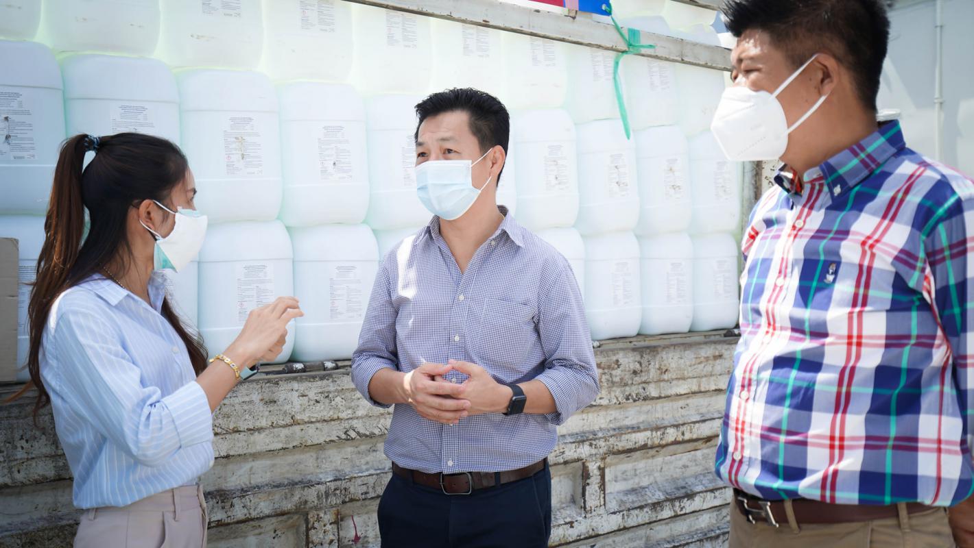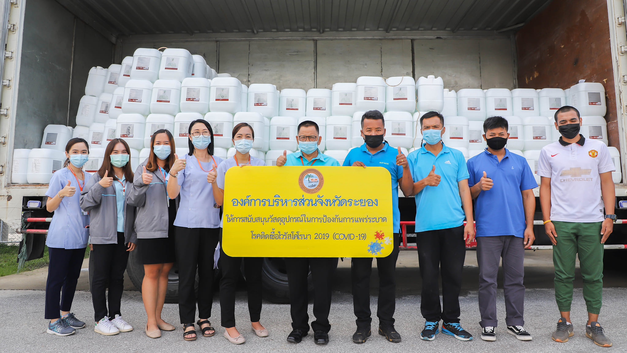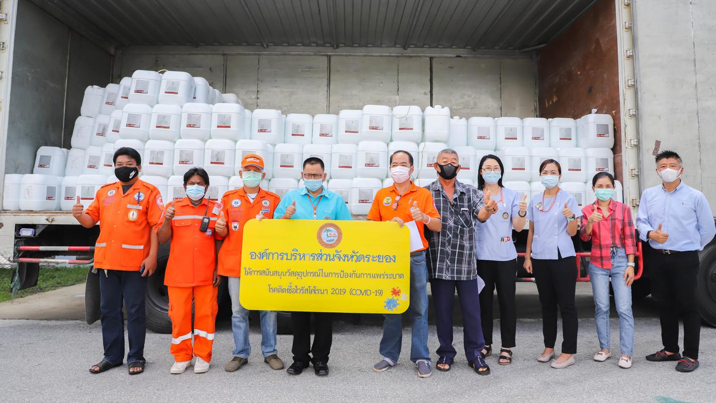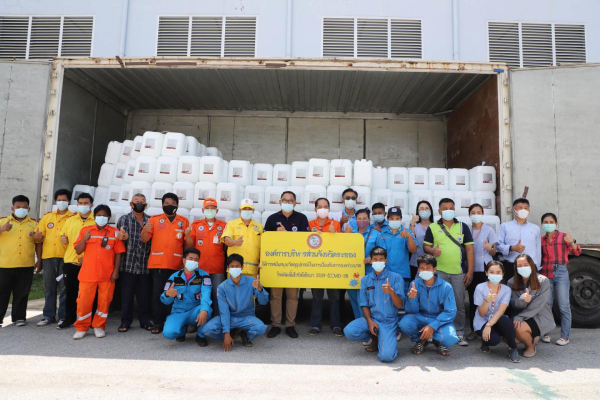 อบจ.ระยอง สนับสนุนน้ำยาฆ่าเชื้อและเจลแอลกอฮอล์
