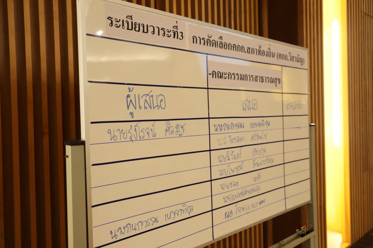 โดยมีระเบียบวาระการประชุมอยู่ 9 วาระด้วยกัน อาทิเช่น ระเบียบวาระที่ 3 เรื่อง การคัดเลือกคณะกรรมการสภาท้องถิ่น (คณะกรรมการวิสามัญ) คณะกรรมการสาธารณสุข โดยผู้ที่ได้รับการเสนอชื่อได้แก่1. นางกนกวรรณ เบญจาทิกุล