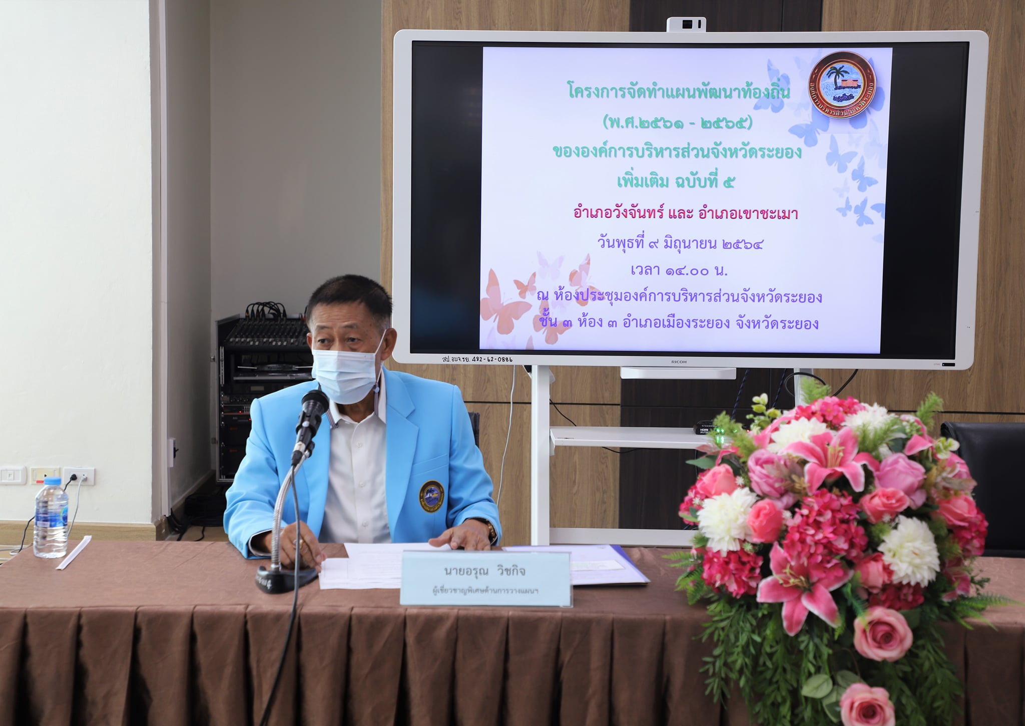 เมื่อวันที่ 9 มิถุนายน 2564 เวลา 14.00 น. กองยุทธศาสตร์และงบประมาณ องค์การบริหารส่วนจังหวัดระยอง จัดการประชุมประชาคมการจัดทำแผนพัฒนาท้องถิ่นขององค์การบริหารส่วนจังหวัดระยอง (พ.ศ. 2561 - 2565) (เพิ่มเติม ฉบับที่ 5) ครั้งที่ 6/2564 (อำเภอวังจันทร์และอำเภอเขาชะเมา) โดยมี นายอรุณ วิชกิจ ผู้เชี่ยวพิเศษด้านการวางแผนและวิเคราะห์นโยบาย เข้าร่วมพิธีเปิดโครงการ พร้อมด้วย สมาชิกสภาองค์การบริหารส่วนจังหวัดระยอง หัวหน้าส่วนราชการ ผู้อำนวยการกอง องค์กรปกครองส่วนท้องถิ่นในเขตพื้นที่อำเภอวังจันทร์และอำเภอเขาชะเมา เข้าร่วมงานอย่างพร้อมเพรียง ณ ห้องประชุม 3 ชั้น 3 อบจ.ระยอง