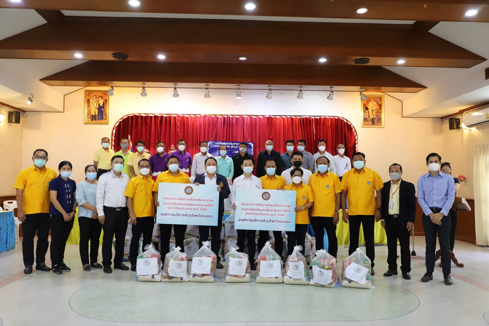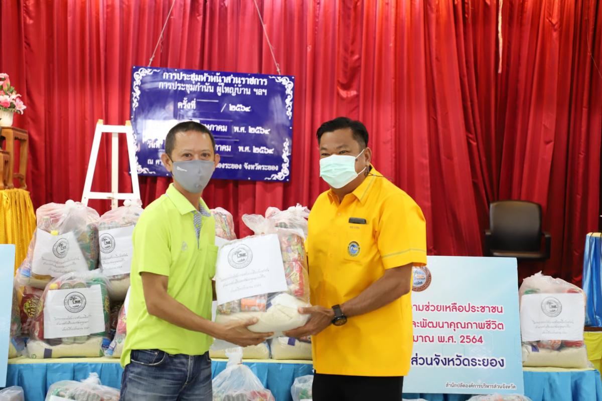 วันพุธ ที่ 7 กรกฎาคม 2564 นายกิตติ เกียรติ์มนตรี รองนายกองค์การบริหารส่วนจังหวัดระยอง นายฉัตรชัย ปิตุเตชะ เลขานุการนายกองค์การบริหารส่วนจังหวัดระยอง สมาชิกสภาองค์การบริหารส่วนจังหวัดระยอง อำเภอเมืองระยอง พร้อมด้วย นายอำเภอเมืองระยอง,นายอำเภอเมืองบ้านฉาง ร่วมมอบถุงอุปโภค – บริโภค ให้องค์กรปกครองส่วนท้องถิ่นในพื้นที่ อ.เมืองระยอง ทั้งหมด 12 แห่ง จำนวน 1,830 ถุง ณ ที่ว่าการอำเภอเมืองระยอง และองค์กรปกครองส่วนท้องถิ่นในพื้นที่ อ.เมืองระยอง (ทม.มาบตาพุด) ทั้งหมด 1 แห่ง จำนวน 201 ถุง ณ ศูนย์สาธารณสุขใหม่ (ตึก M) หน้าวัดมาบตาพุด และองค์กรปกครองส่วนท้องถิ่นในพื้นที่ อ.บ้านฉาง ทั้งหมด 3 แห่ง จำนวน 450 ถุง ณ ที่ว่าการอำเภอบ้านฉาง โดยมีวัตถุประสงค์ เพื่อช่วยเหลือเยียวยา ฟื้นฟูหลังเกิดสาธารณภัย และส่งเสริมคุณภาพชีวิต ด้านการป้องกันและโรคติดต่อ เพื่อช่วยเหลือเกษตรกรผู้มีรายได้น้อย และเพื่อเป็นการสนับสนุนนโยบายขององค์การบริหารส่วนจังหวัดระยองในการแก้ไขปัญหาความยากจนและบรรเทาภาระค่าใช้จ่ายในการครองชีพให้แก่ประชาชนในระยะเวลาหนึ่ง โดยฝ่ายป้องกันและบรรเทาสาธารณภัย สำนักปลัดองค์การบริหารส่วนจังหวัด เป็นผู้รับผิดชอบโครงการ