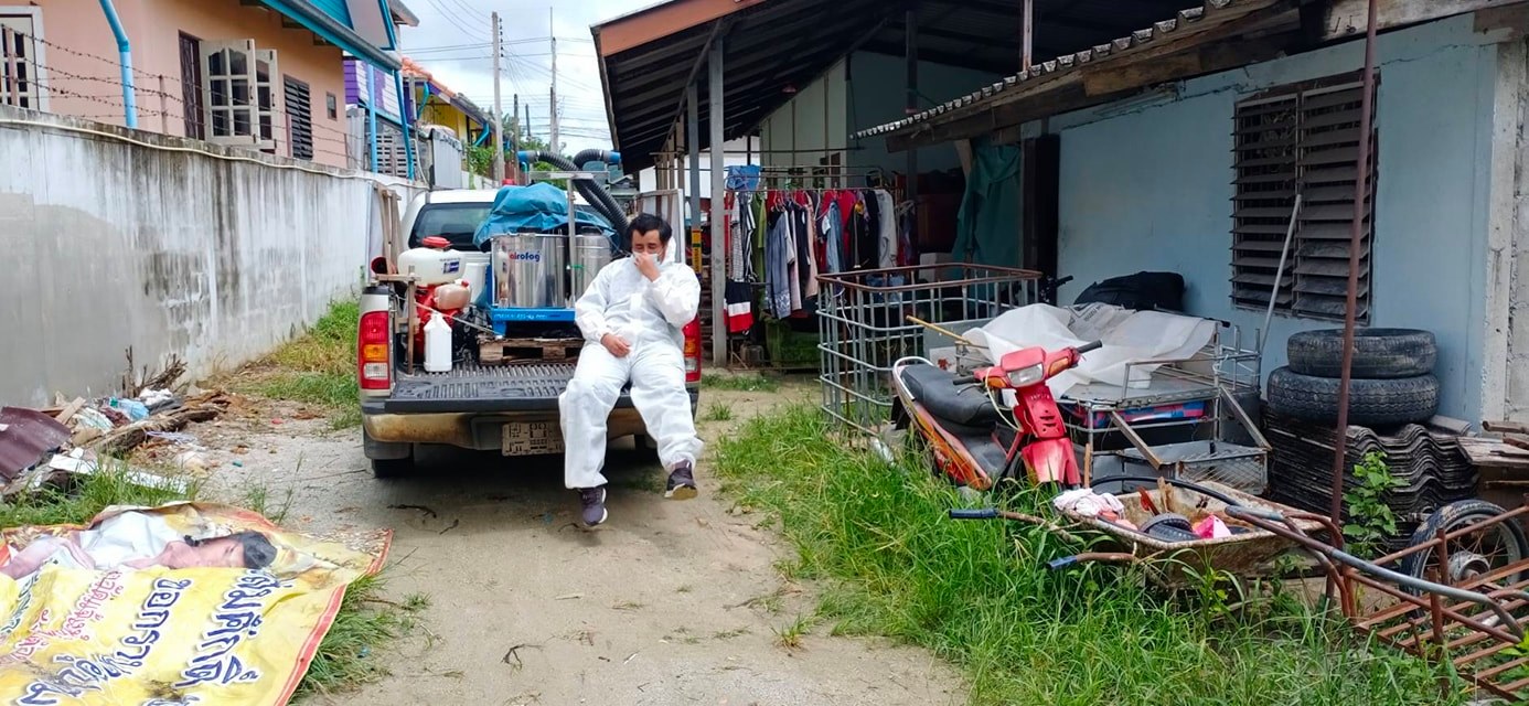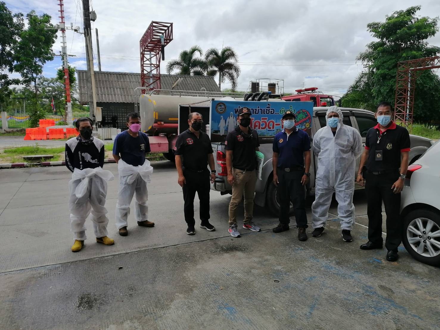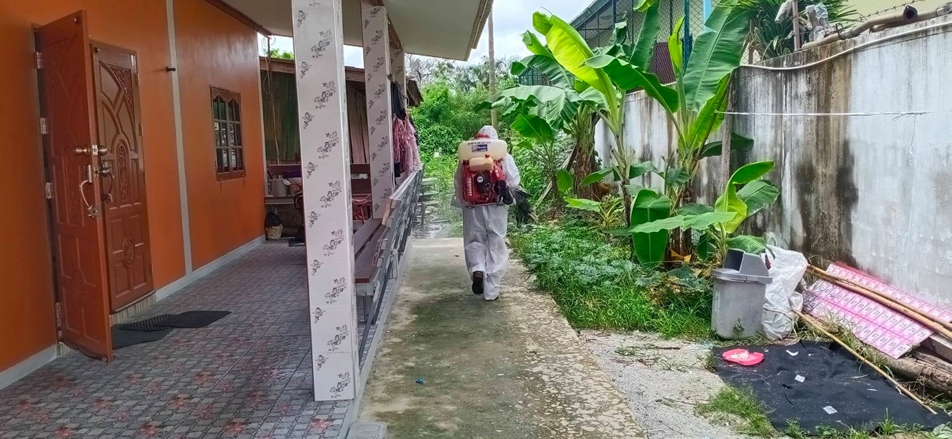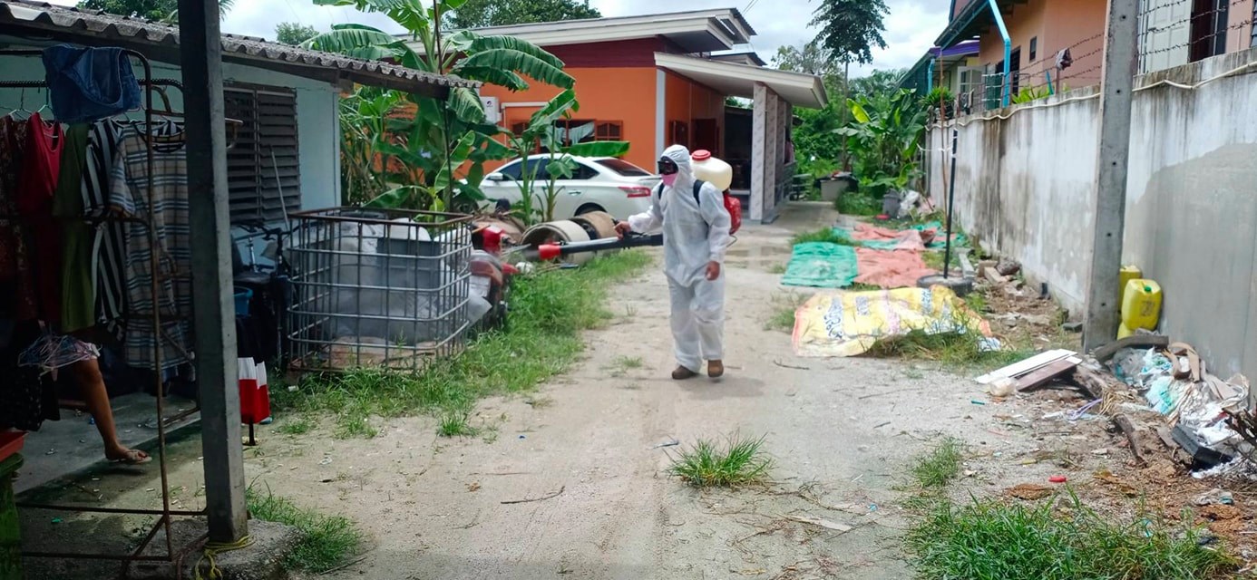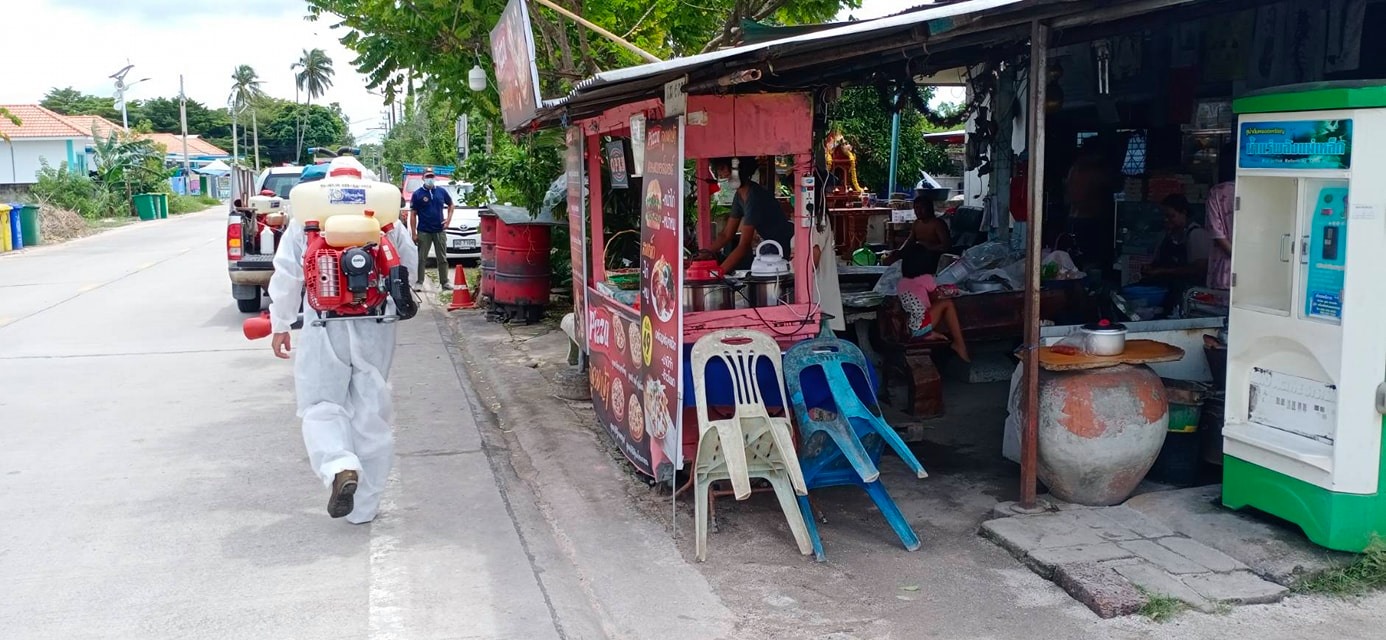 ทำการฉีดพ่นน้ำยาฆ่าเชื้อ โควิด-19 โดยฝ่ายป้องกันและบรรเทาสาธารณภัย อบจ.ระยอง