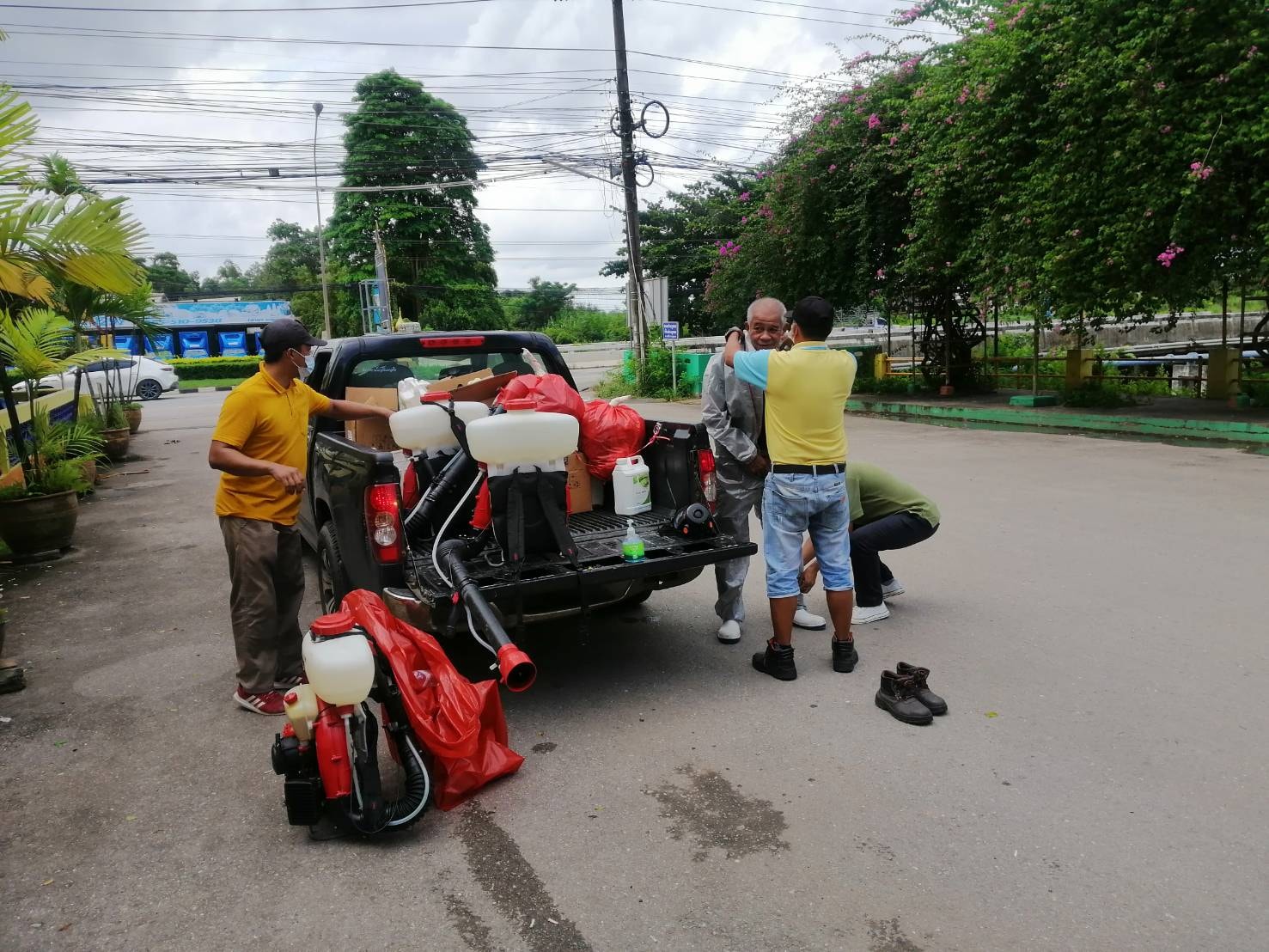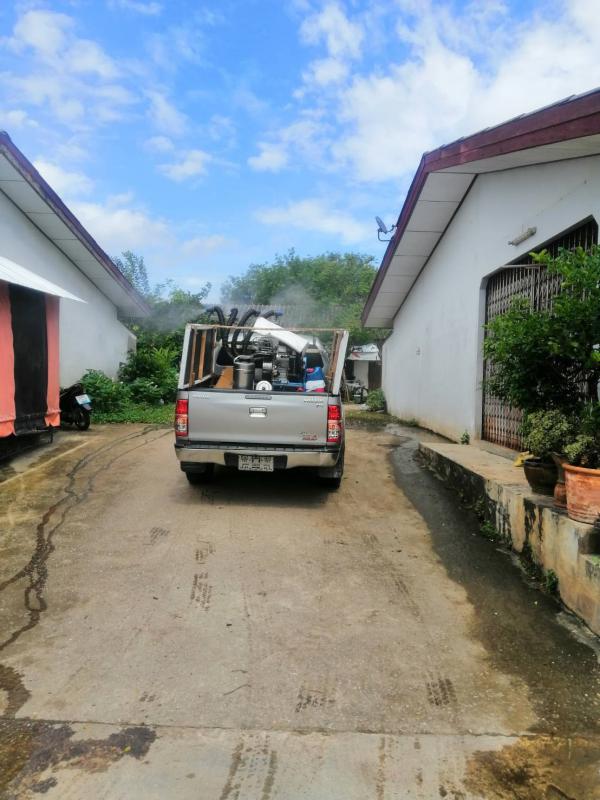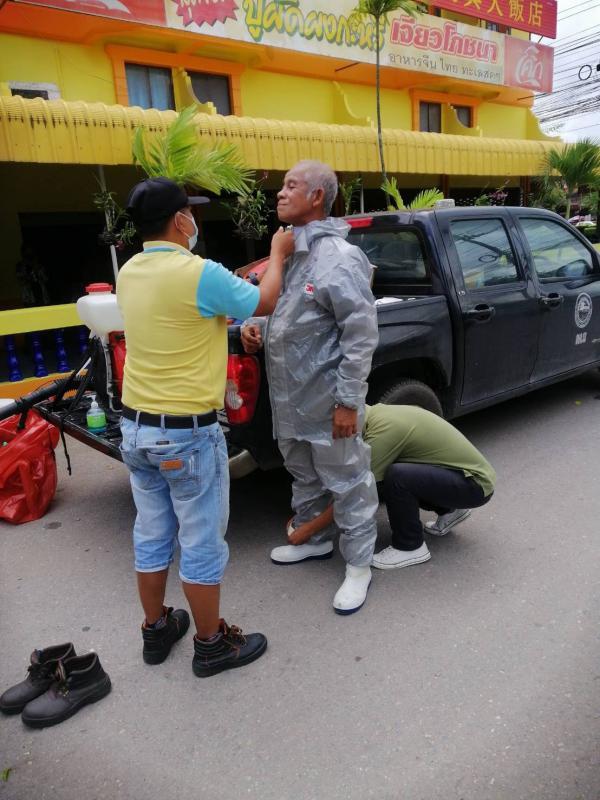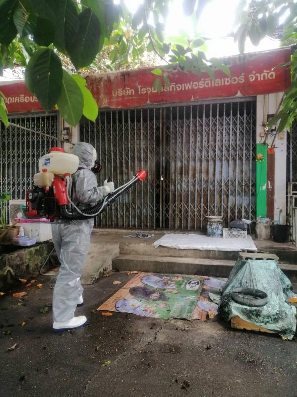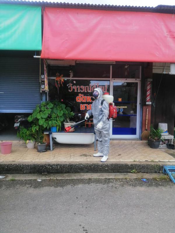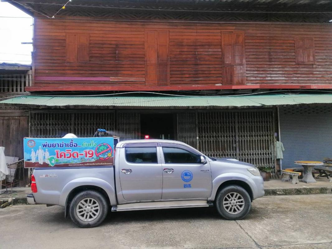 ฉีดพ่นน้ำยาฆ่าเชื้อ โควิด-19 โดยฝ่ายป้องกันและบรรเทาสาธารณภัย อบจ.ระยอง บริเวณตลาดบ้านเพและเขตอ.แกลง
