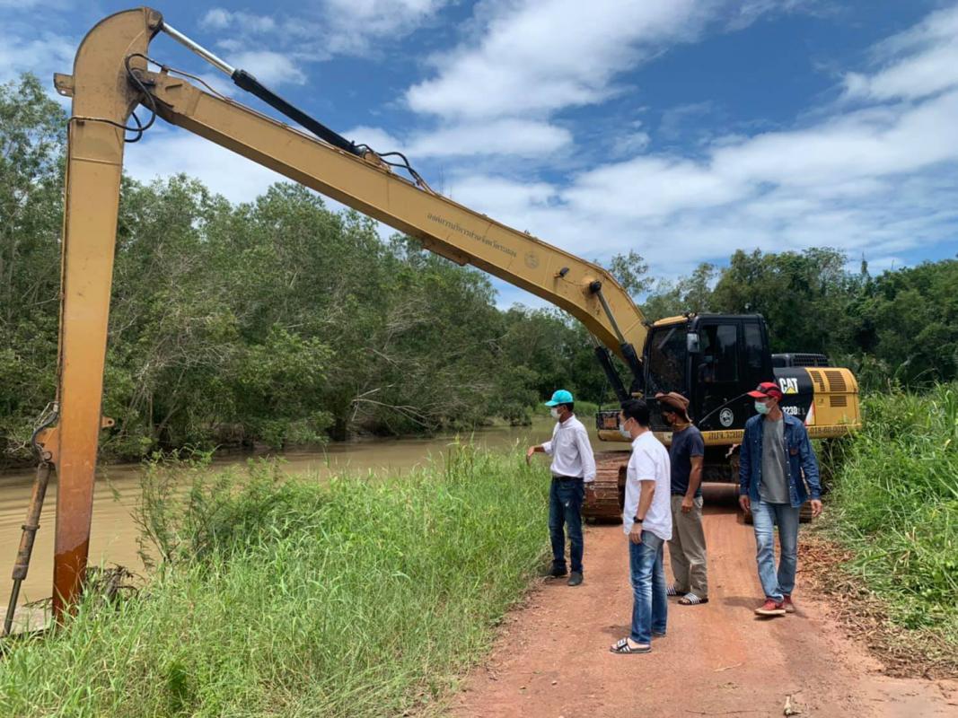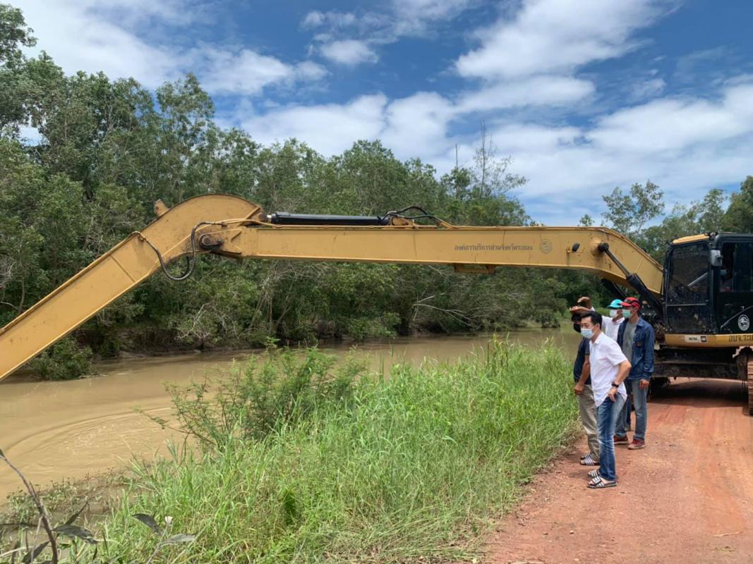 อบจ.ระยองนำเครื่องจักรกลเข้าดำเนินการขุดลอกวัชพืชเพื่อเร่งระบายน้ำบริเวณเทศบาลตำบลเนินฆ้อ