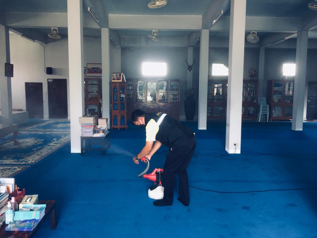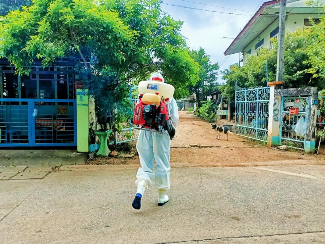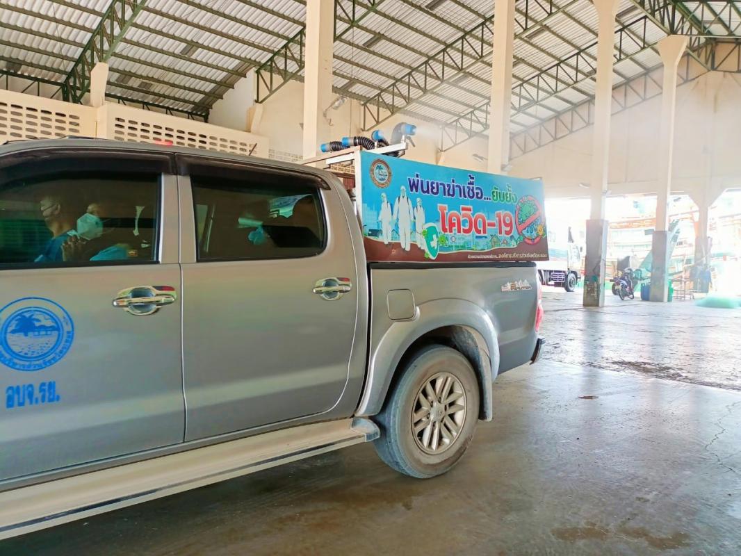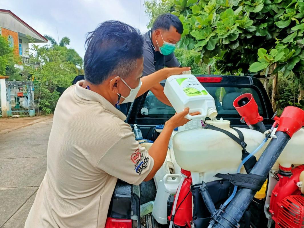 ฝ่ายป้องกันและบรรเทาสารณภัย สำนักปลัดองค์การบริหารส่วนจังหวัด ฉีดพ่นน้ำยาฆ่าเชื้อ