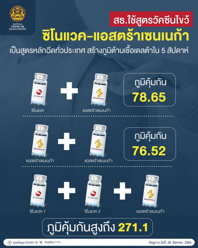 เมื่อวันที่ 20 ตุลาคม 2564 วิทยาลัยเทคโนโลยีและอาชีวะศึกษาตากสินระยอง โรงเรียนในสังกัดขององค์การบริหารส่วนจังหวัดระยอง นำเด็กนักเรียนในระดับ ปวส.1 จำนวน 41 คน เข้ารับการฉีดวัคซีนสูตรไขว้ซิโนแวค+แอสตร้าเซนเนก้า (SV+AZ) เพื่อป้องกันโรคโควิด-19 ณ ห้างแหลมทองระยอง ซึ่งวัคซีนโควิดสูตรไขว้นี้จะฉีด จำนวน 2 เข็ม ซึ่งเข็มแรกจะเป็นซิโนแวค (SV) และเข็มที่ 2 จะเป็นแอสตร้าเซนเนก้า (AZ) ซึ่งจะฉีดอีกครั้งในวันที่ 10 พฤศจิกายน 2564 โดยกระทรวงสาธารณสุข ใช้สูตรวัคซีนไขว้ “ซิโนแวค+แอสตร้าเซนเนก้า” เป็นสูตรหลักฉีดให้กับประชาชนทั่วไปและกลุ่มเสี่ยง เนื่องจากสร้างภูมิคุ้มกันได้สูงภายใน 5 สัปดาห์ และต้านเชื้อเดลต้าได้ มีความปลอดภัยดี สำหรับการฉีดวัคซีนสูตรไขว้ซิโนแวคตามด้วยแอสตร้าเซนเนก้า จะฉีดห่างกัน 3 สัปดาห์ กระทรวงสาธารณสุขจึงปรับมาฉีดสูตรนี้ทั่วประเทศ เพื่อให้เกิดภูมิคุ้มกันหมู่ในเวลาอันรวดเร็ว