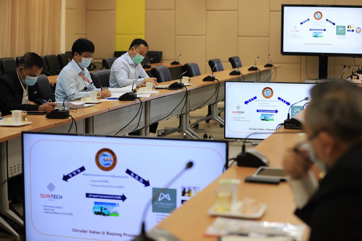 วันที่ 28 ตุลาคม 2564 เวลา 11.00 น. ณ ห้องประชุม 2 ชั้น 3 องค์การบริหารส่วนจังหวัดระยอง นายปิยะ ปิตุเตชะ นายกองค์การบริหารส่วนจังหวัดระยอง พร้อมด้วยคณะผู้บริหาร และเจ้าหน้าที่ที่เกี่ยวข้องเข้าร่วมประชุมศึกษาแนวทางการจัดการขยะอุตสาหกรรมในเขตพื้นที่ EEC โดยมี ศาสตราจารย์ ดร.ธานินทร์ ศิลป์จารุ คณบดี คณะบริหารธุรกิจ มหาวิทยาลัยเทคโนโลยีพระจอมเกล้าพระนครเหนือ วิทยาเขตระยอง และคณะอาจารย์จากมหาวิทยาลัย เข้าร่วมประชุมในครั้งนี้ โดยมีวัตถุประสงค์ เพื่อศึกษาหาแนวทางในการจัดการขยะอุตสาหกรรมในเขตพื้นที่ EEC ที่มีจำนวนมากกว่า 5 ล้านตันต่อปี ซึ่งสามารถนำไปผลิตเป็นพลังงานไฟฟ้าได้ และนำกลับมาเพื่อใช้ในเขตพื้นที่ EEC ให้เกิดประโยชน์สูงสุด เพื่อเป็นการลดปัญหาการเพิ่มปริมาณของขยะอุตสาหกรรมจากนิคมอุตสาหกรรมต่างๆ