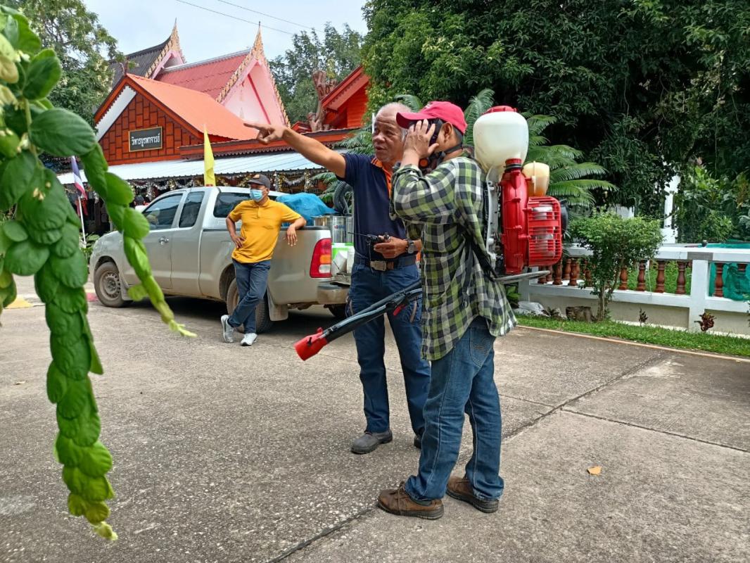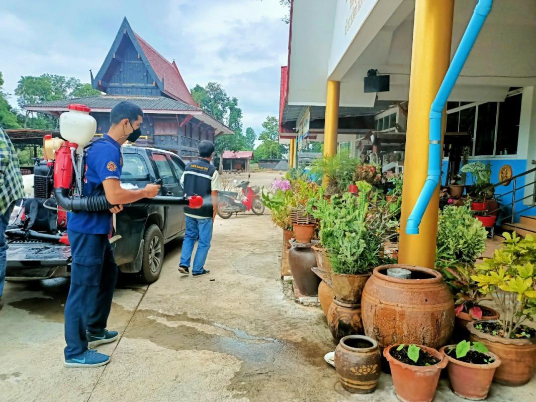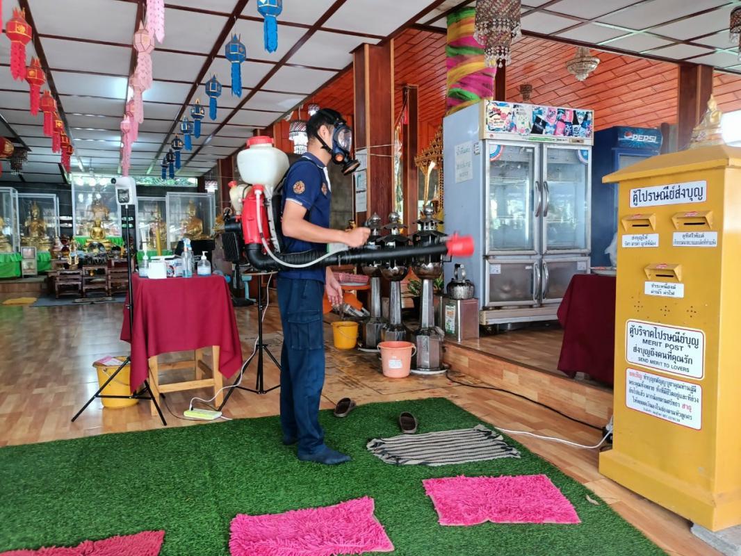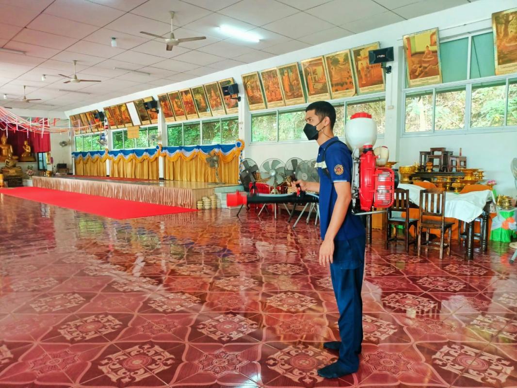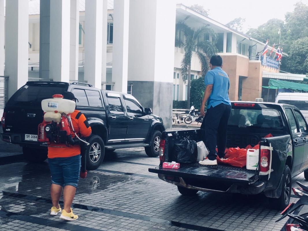 ฉีดพ่นน้ำยาฆ่าเชื้อโดยฝ่ายป้องกันและบรรเทาสารณภัย สำนักปลัดองค์การบริหารส่วนจังหวัด