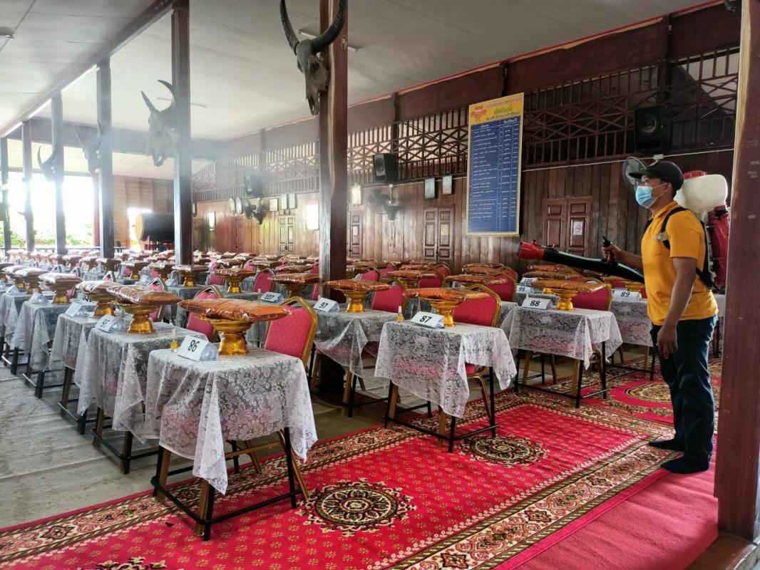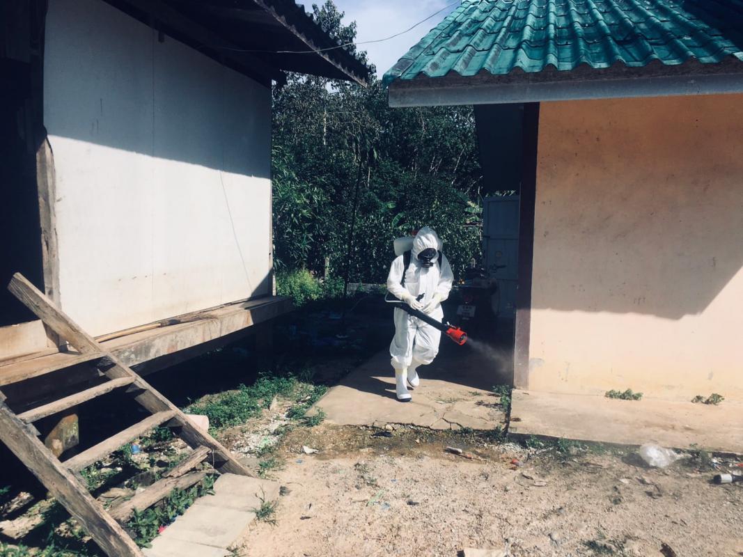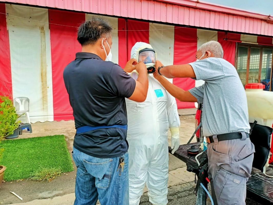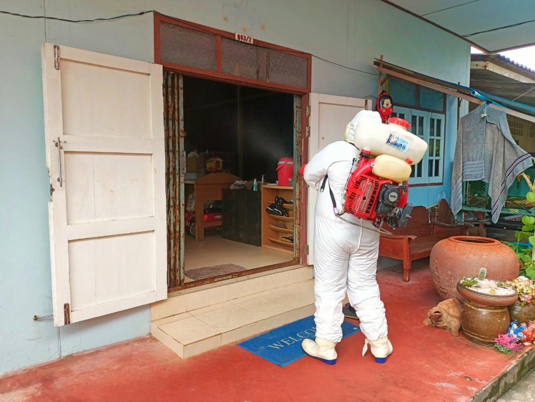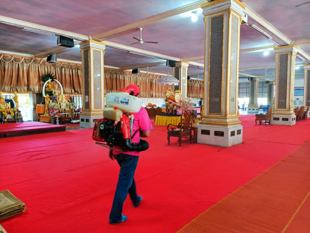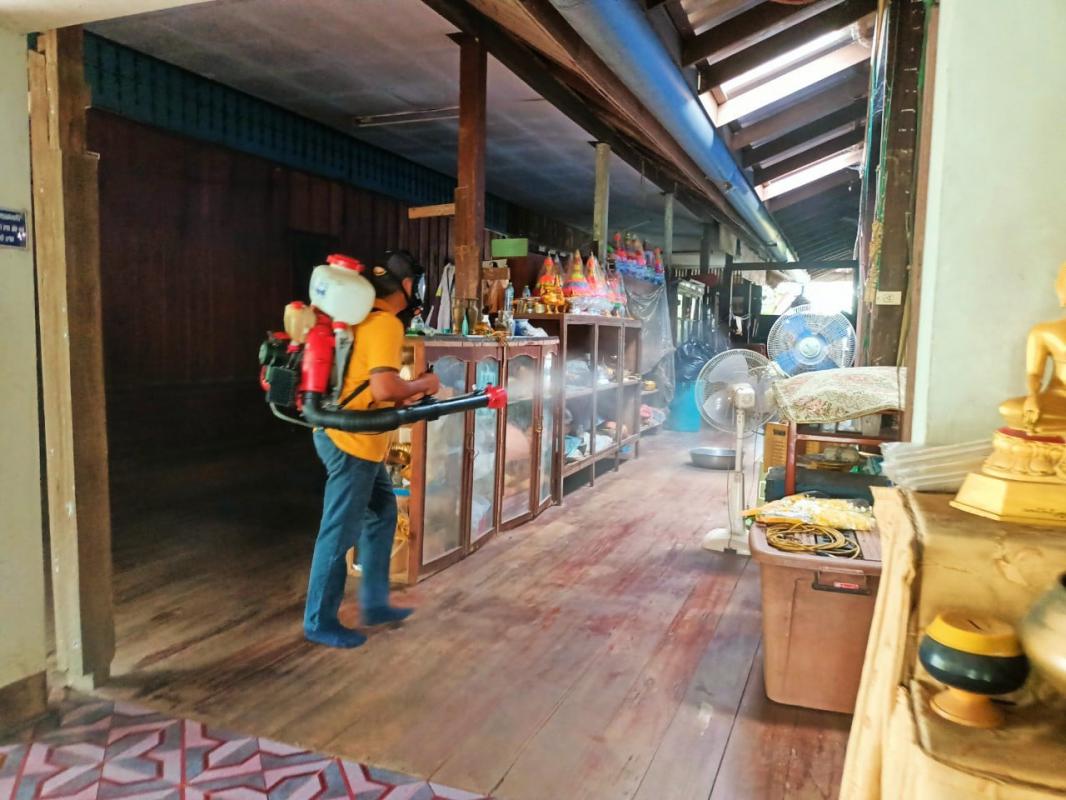 ฉีดพ่นน้ำยาฆ่าเชื้อโดยฝ่ายป้องกันและบรรเทาสารณภัย สำนักปลัดองค์การบริหารส่วนจังหวัด