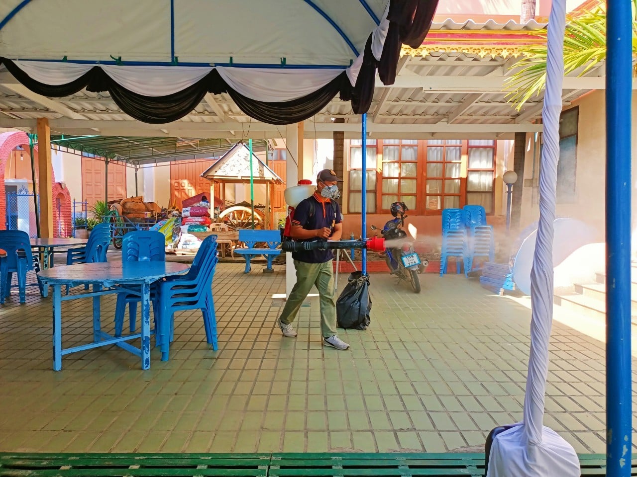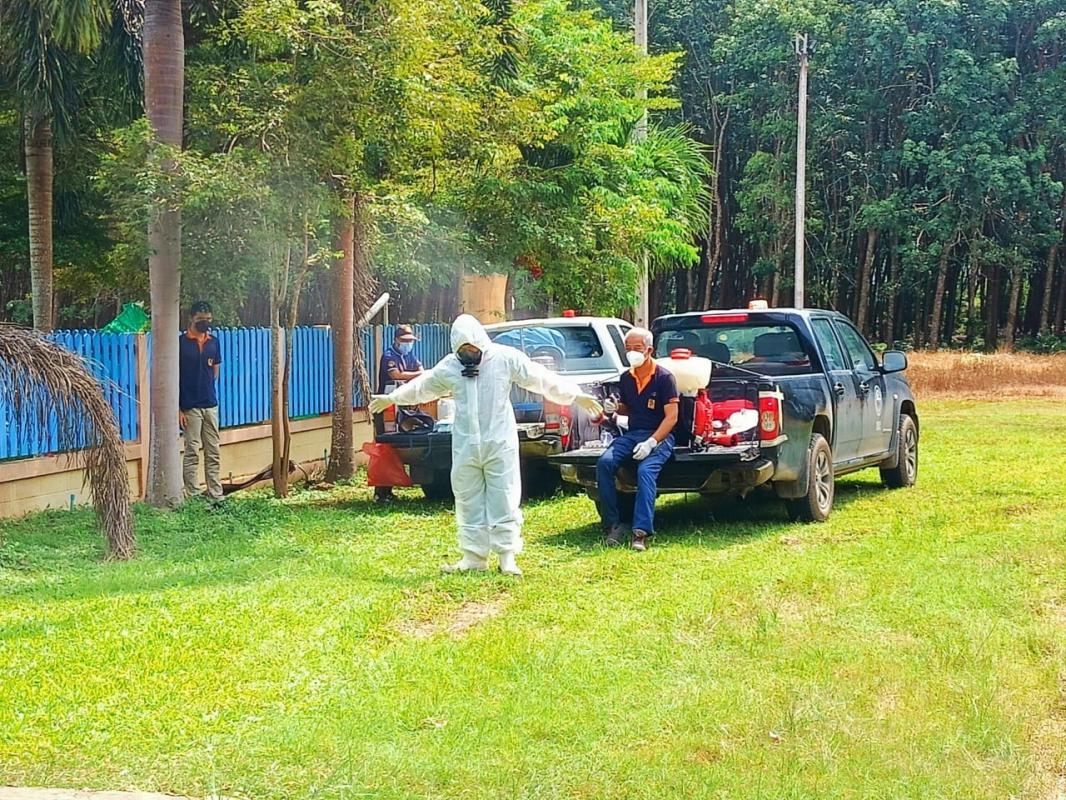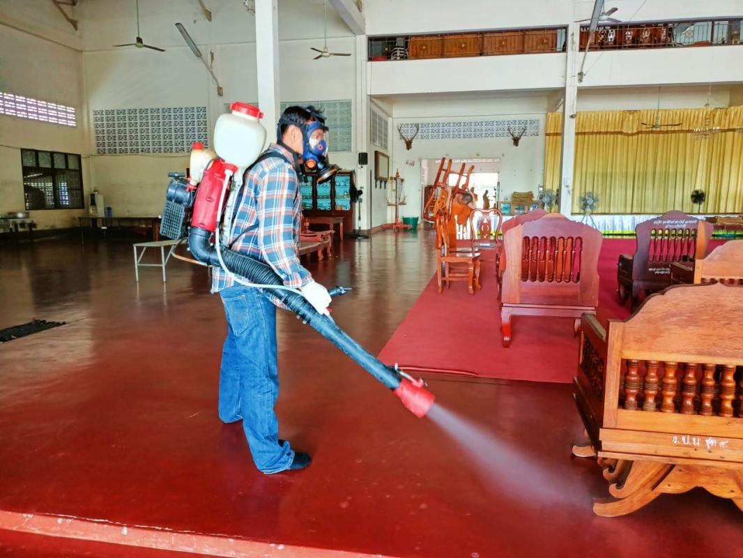 ฝ่ายป้องกันและบรรเทาสาธารณภัย สำนักปลัดองค์การบริหารส่วนจังหวัด ฉีดพ่นน้ำยาฆ่าเชื้อ