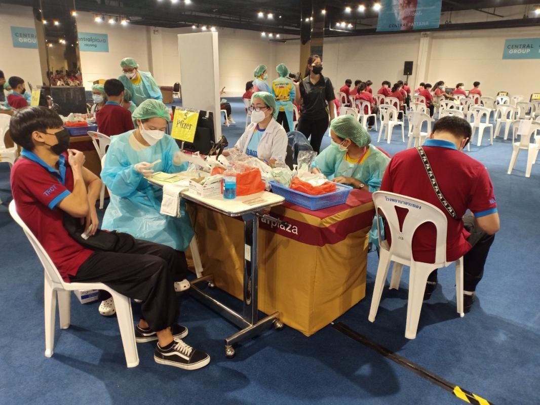 นักเรียนฉีดวัคซีน pfizer เข็มที่ 2 ณห้างเซ็นทรัลระยอง
