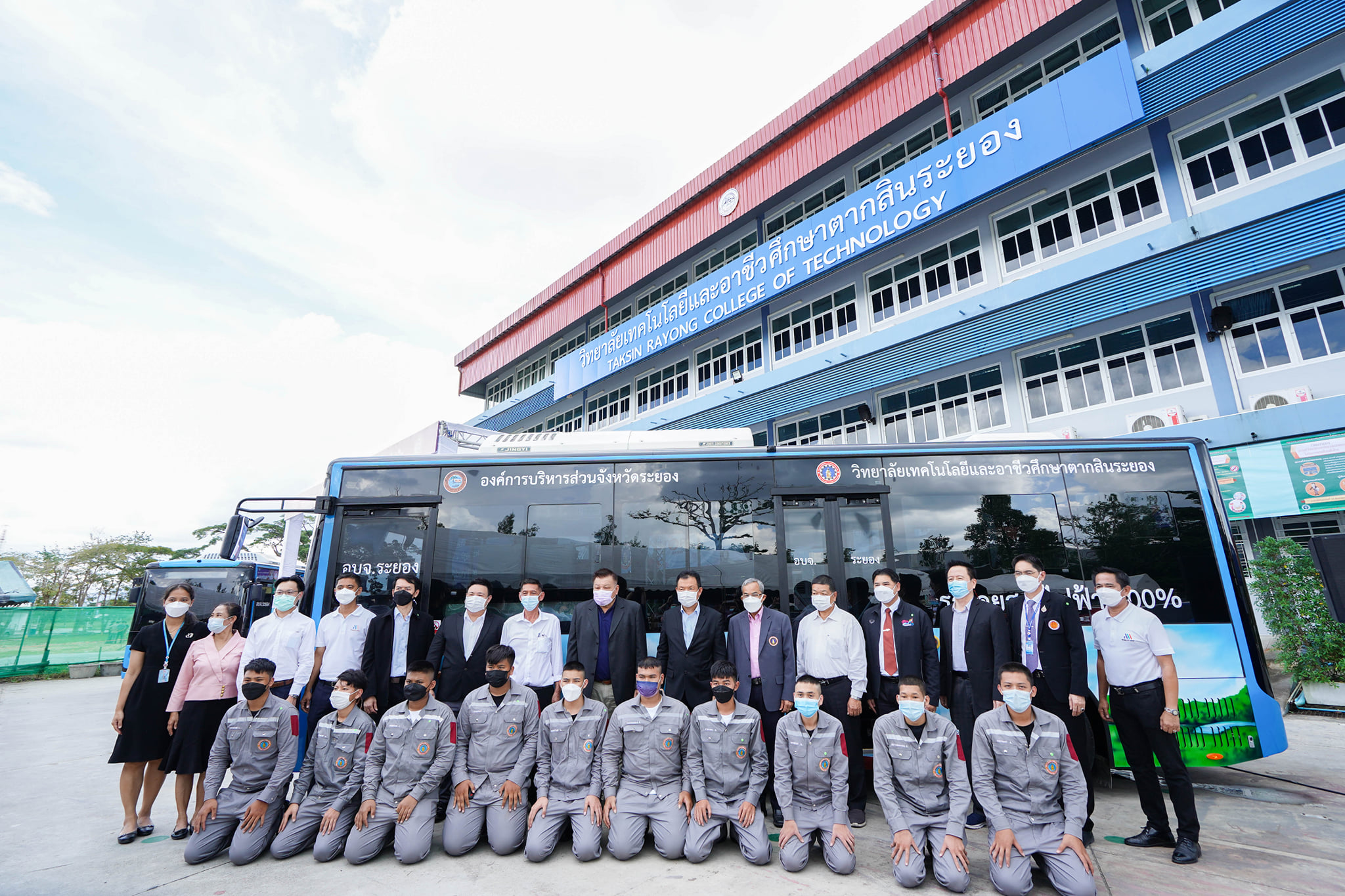 วันที่ 16 พฤศจิกายน 2564 เวลา 13.30 น. ณ วิทยาลัยเทคโนโลยีและอาชีวศึกษาตากสินระยอง นายปิยะ ปิตุเตชะ นายกองค์การบริหารส่วนจังหวัดระยอง เข้ารับมอบรถโดยสารไฟฟ้า ราคาประมาณ 15 ล้านบาท พร้อมสถานีชาร์จรถไฟฟ้า จาก บริษัท โมบิลิตี้วัน จำกัด โดยนายสมศักดิ์ พะเนียงทอง กรรมการผู้จัดการ บริษัท โมบิลิตี้วัน จำกัด ได้ทำการส่งมอบรถโดยสารไฟฟ้า จำนวน 2 คัน พร้อมสถานีชาร์จรถไฟฟ้าให้กับทางองค์การบริหารส่วนจังหวัดระยอง เพื่อนำไปใช้ในการศึกษาของวิทยาลัยเทคโนโลยีและอาชีวศึกษาตากสินระยอง รถโดยสารไฟฟ้า แบบ Ciy bus ใช้พลังงานไฟฟ้า 100% มีขนาด 8.1 เมตร จำนวน 23 ที่นั่ง ระยะทางวิ่งสูงสุด 230 กิโลเมตร เป็นรถที่มีเทคโนโลยีระบบอัจฉริยะทั้งคัน มีความคล่องตัว มีระบบกล้อง 360 องศารอบคัน เพื่อความปลอดภัยสำหรับคนขับและผู้โดยสาร นอกจากนี้ทางบริษัทฯ ยังได้ติดตั้งสถานีชาร์จสำหรับรถไฟฟ้าอีกด้วย โดยเป็นระบบชาร์จเร็ว DC(Fast Charge) ขนาด 140 กิโลวัตต์ จำนวน 2 หัวจ่าย ใช้เวลาชาร์จเพียง 1 ชั่วโมง ติดตั้งบริเวณหน้าอาคารเรียนวิทยาลัยเทคโนโลยีและอาชีวศึกษาตากสินระยอง เพื่อความสะดวกแก่ผู้ใช้งาน