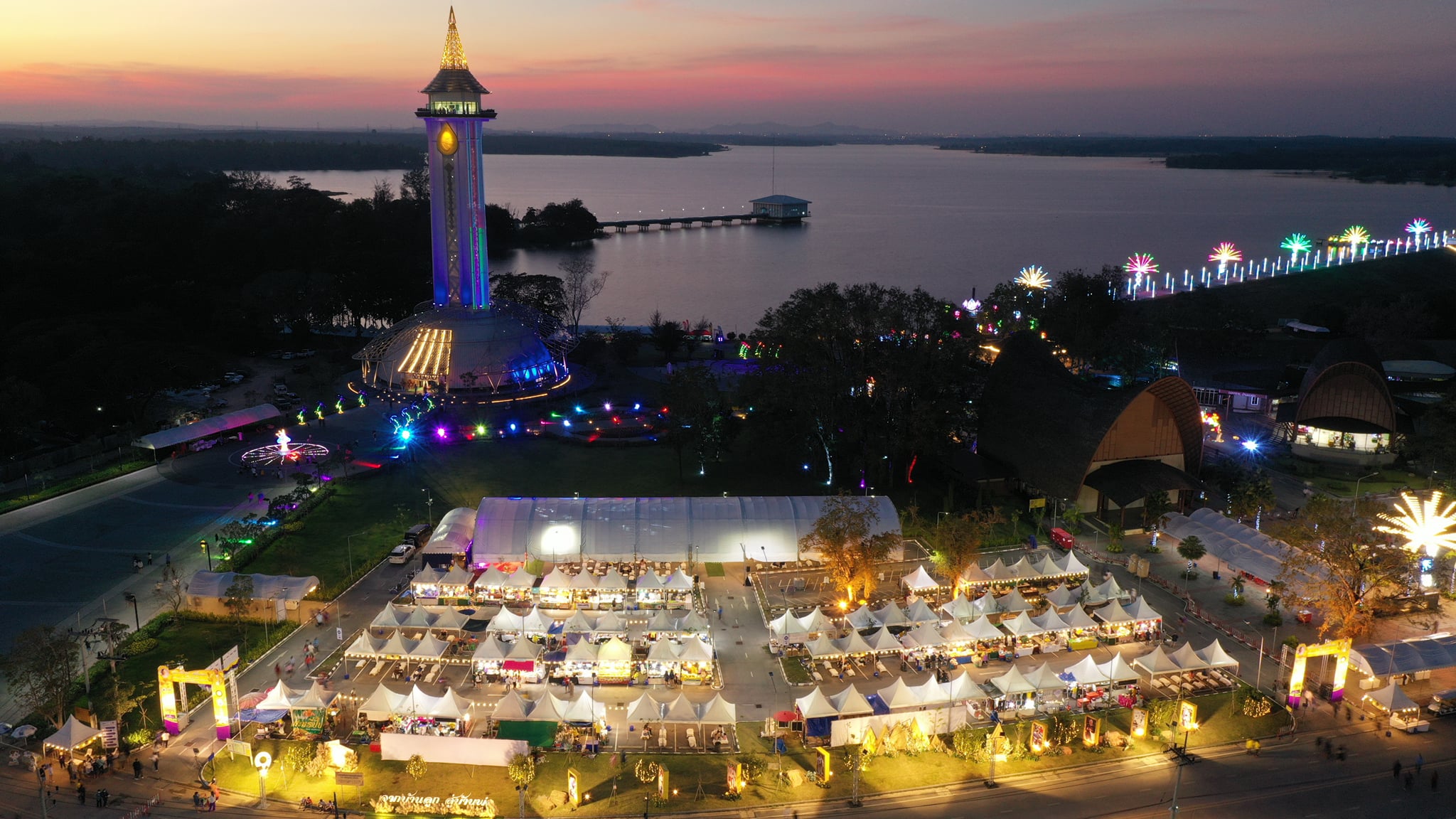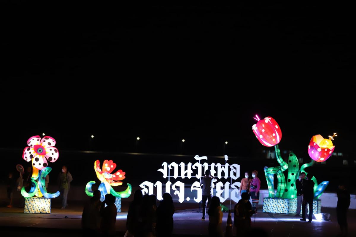 ภาพบรรยากาศงานช่วงกลางคืนโครงการจัดงานวันพ่อแห่งชาติ "ดอกไม้บาน ที่บ้านพ่อ" แสงสียามค่ำคืนของงาน ในวันที่ 4 ธันวาคม 2564 ณ ศูนย์บริการการพัฒนาปลวกแดงตามพระราชดำริ จังหวัดระยอง หรืออ่างเก็บน้ำดอกกราย โดยงานจะมีวันนี้ถึงวันที่ 7 ธันวาคม 2564 เริ่มตั้งแต่เวลา 08.30 – 22.00 น. ท่านใดว่างไม่ได้ไปไหนมาชมไฟสวยๆและมาช็อป มาชิมกันนะคะ